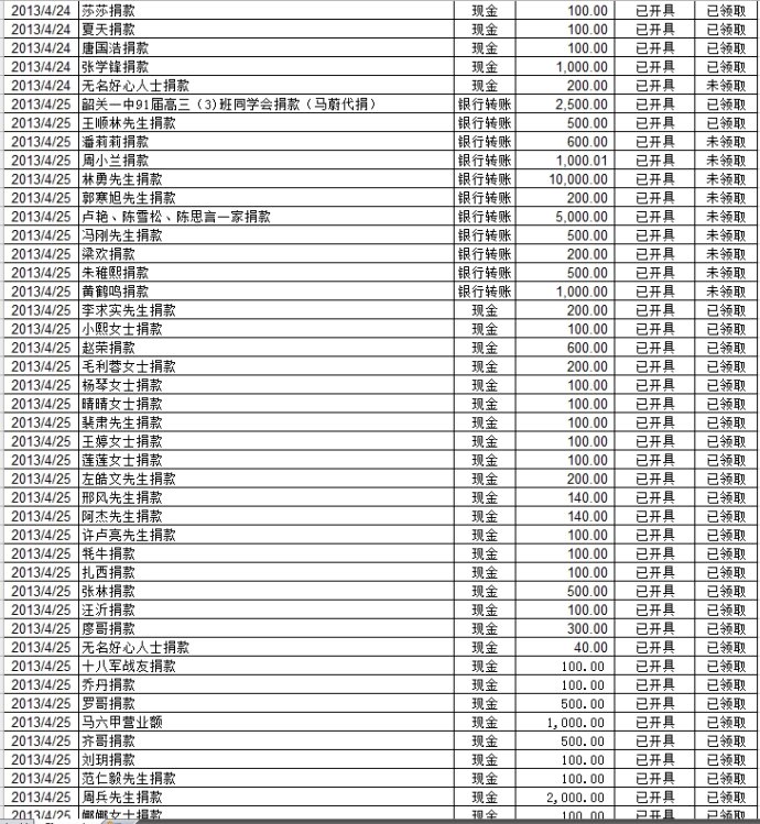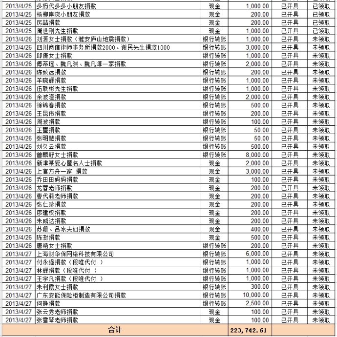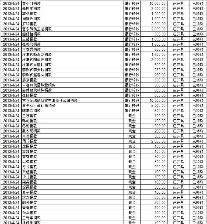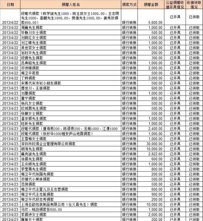 20130427基金会雅安地震援助计划募款清单