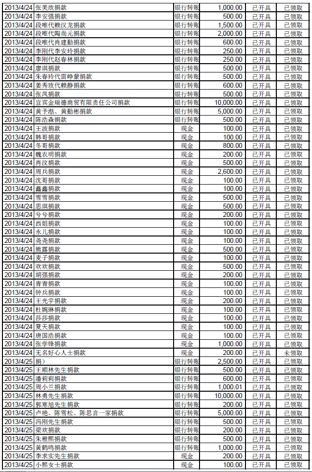 20130502基金会雅安地震援助计划募款清单
