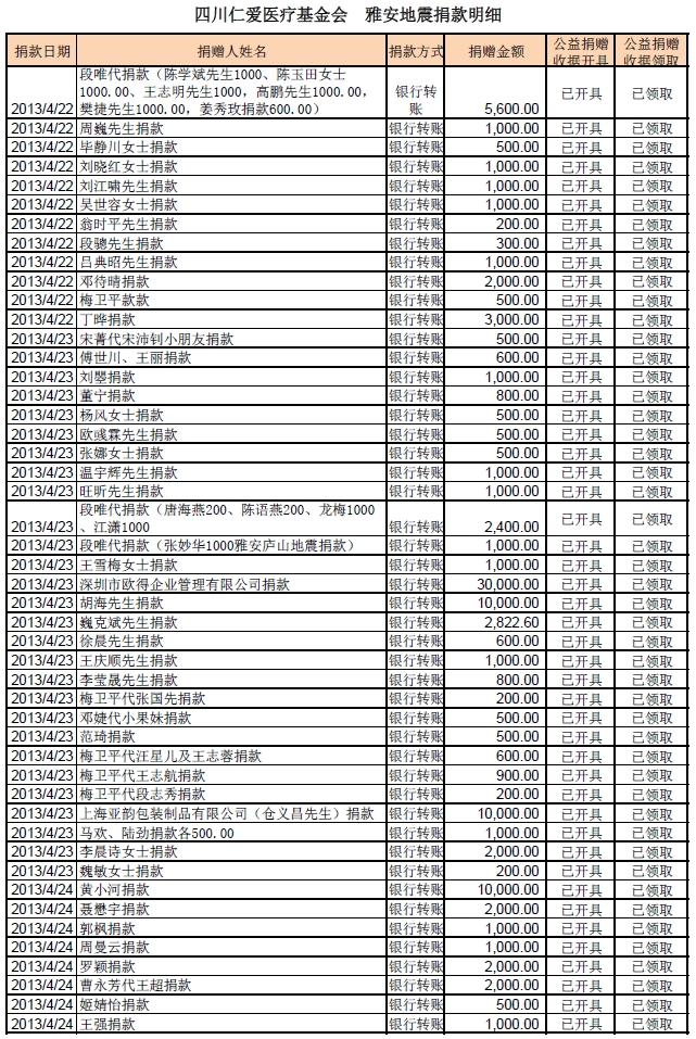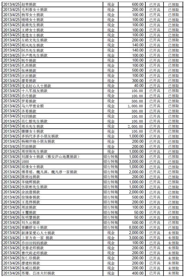 20130502基金会雅安地震援助计划募款清单