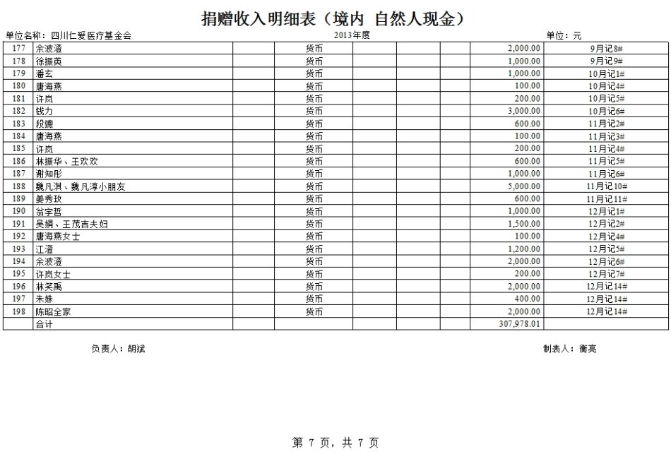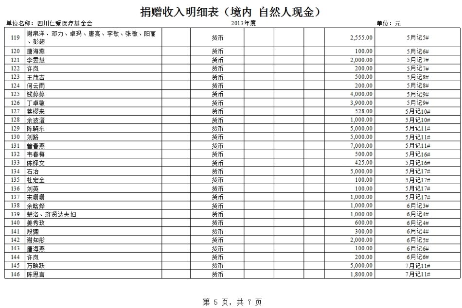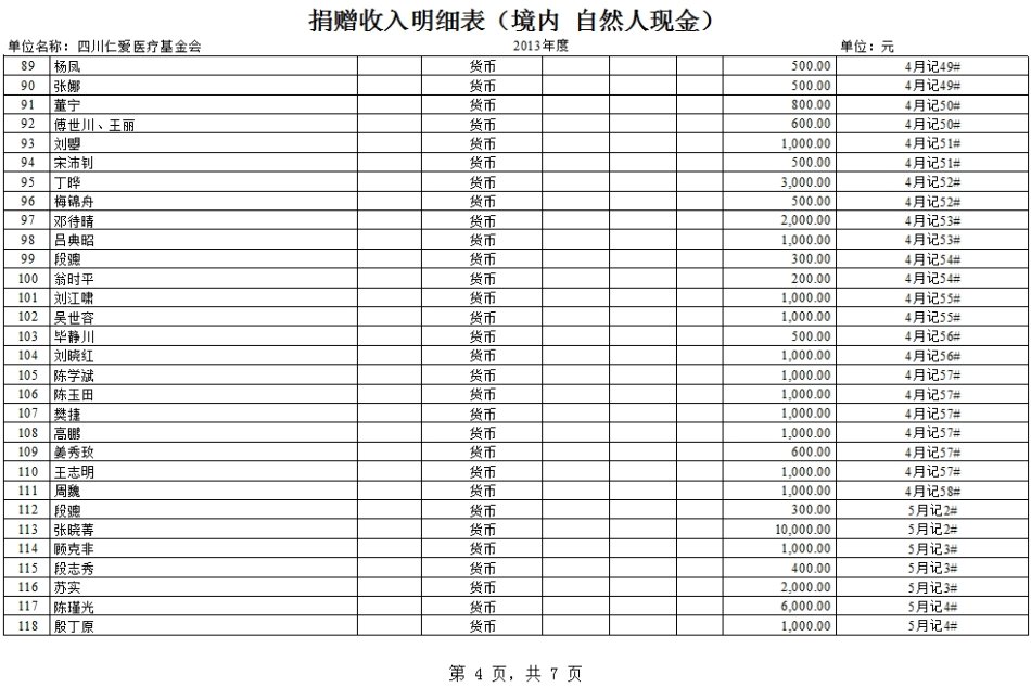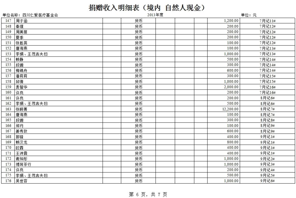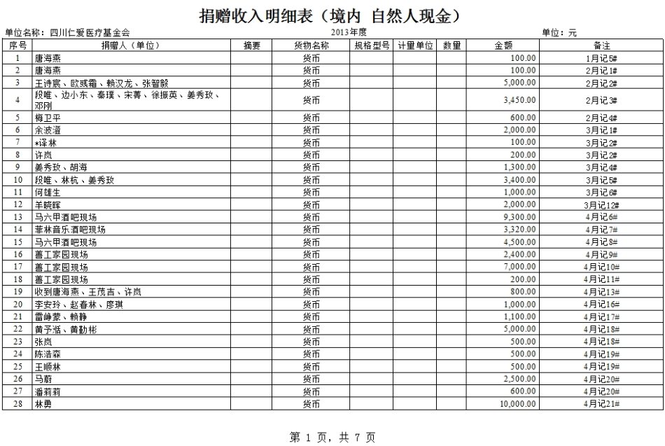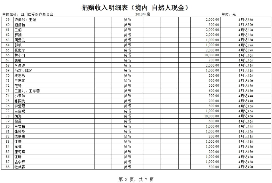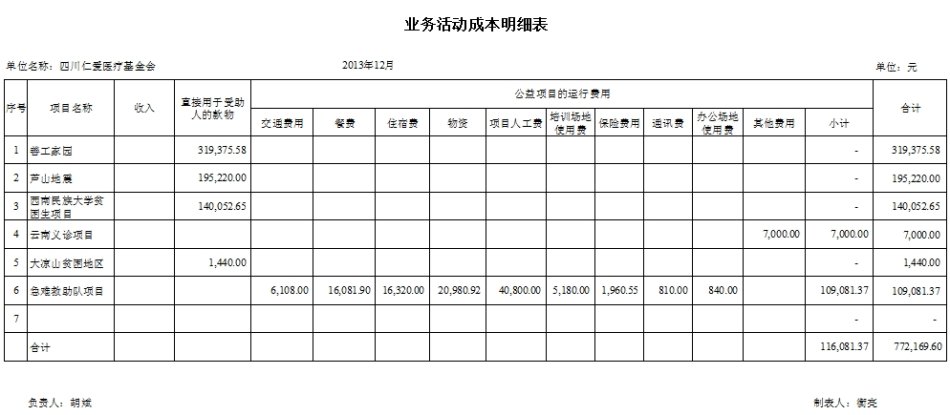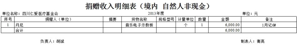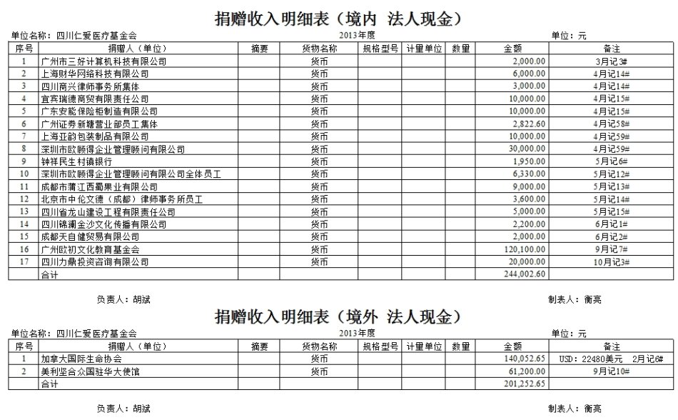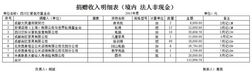 四川仁爱医疗基金会2013年捐赠收入和公益项目支出明细清单