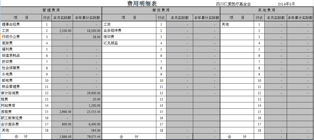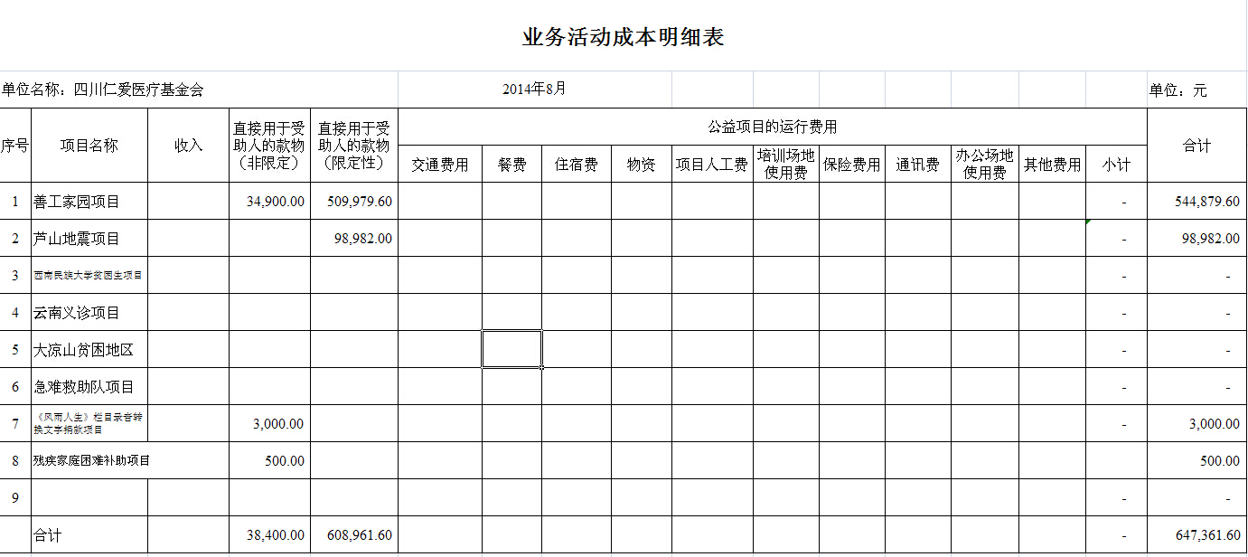 2014年8月捐赠收入和公益项目支出明细清单