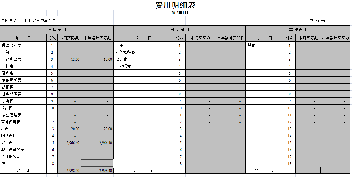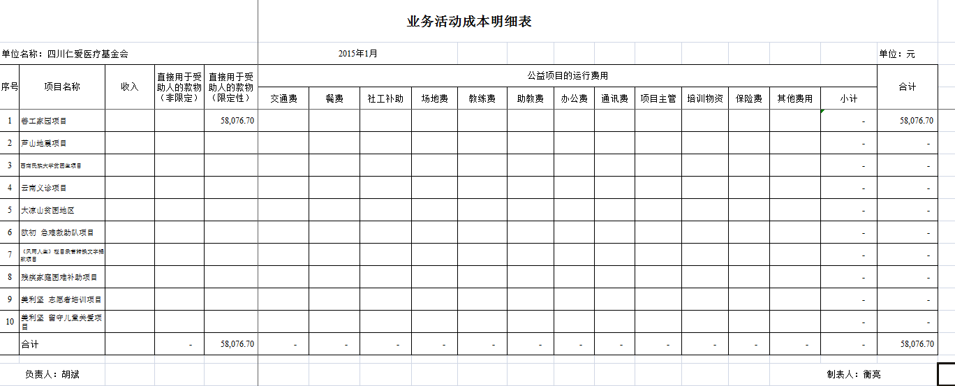 2015年1月捐赠收入和公益项目支出明细清单