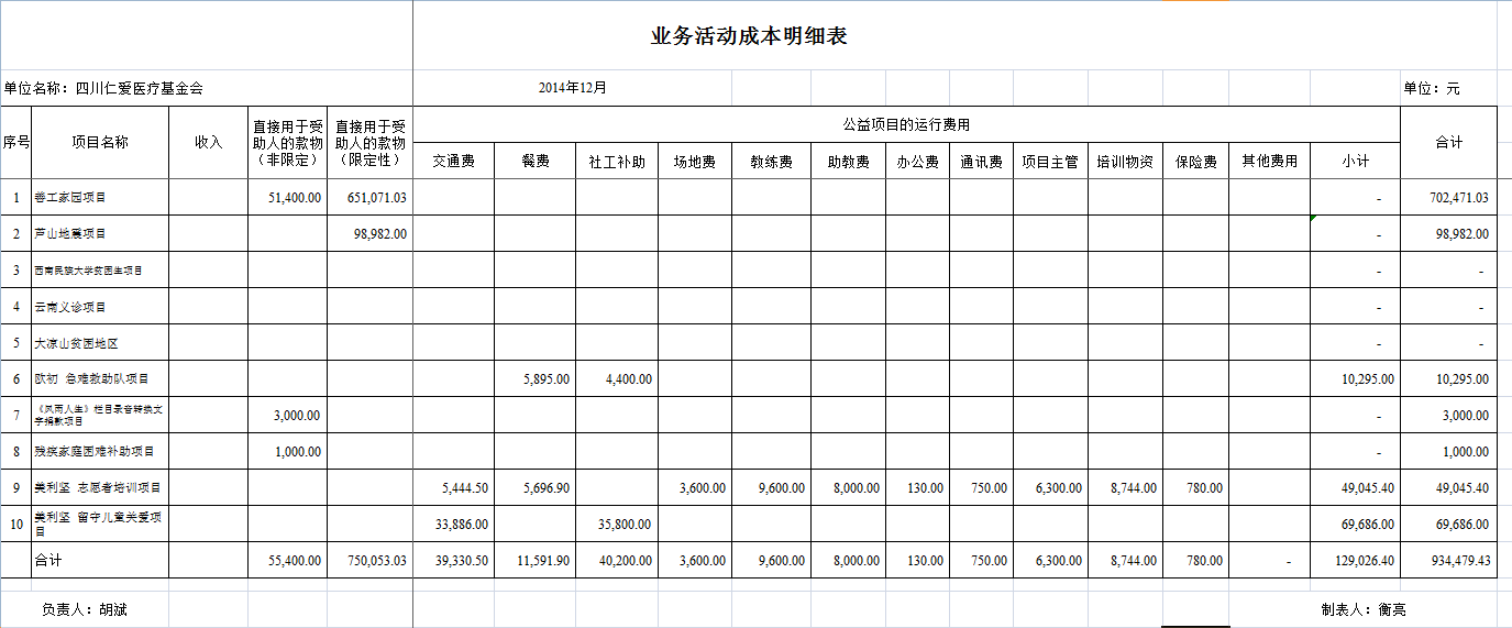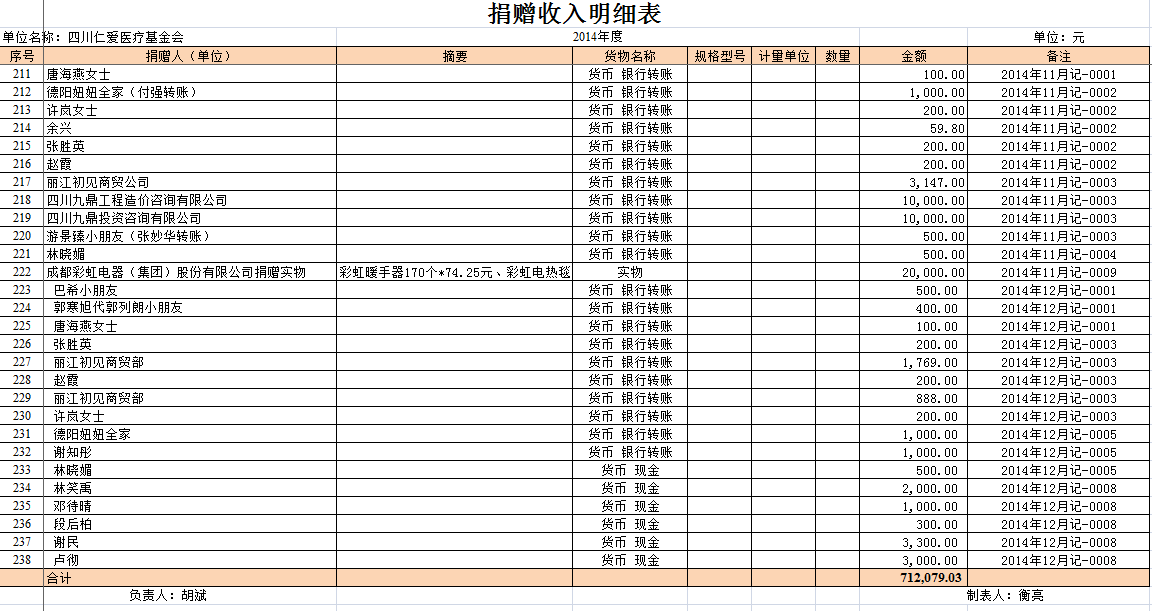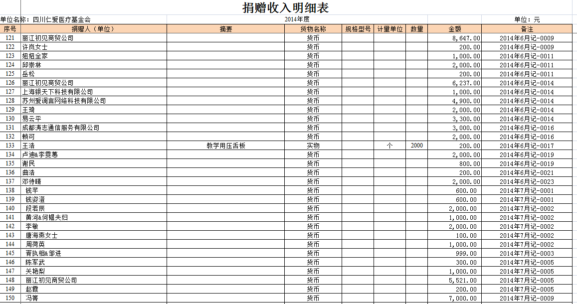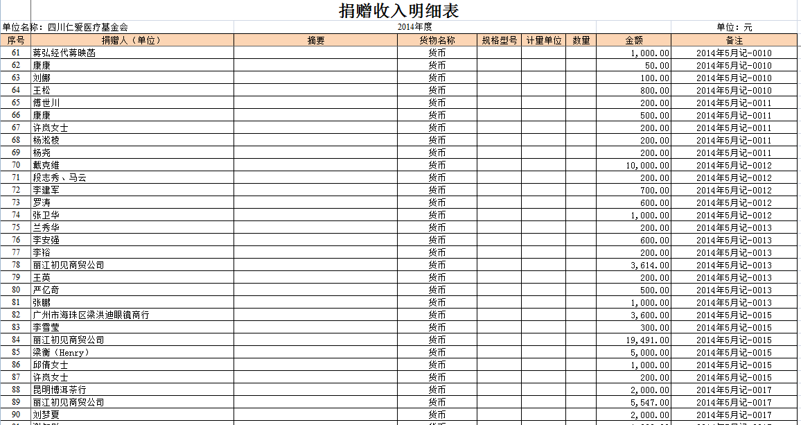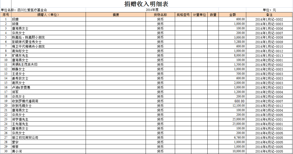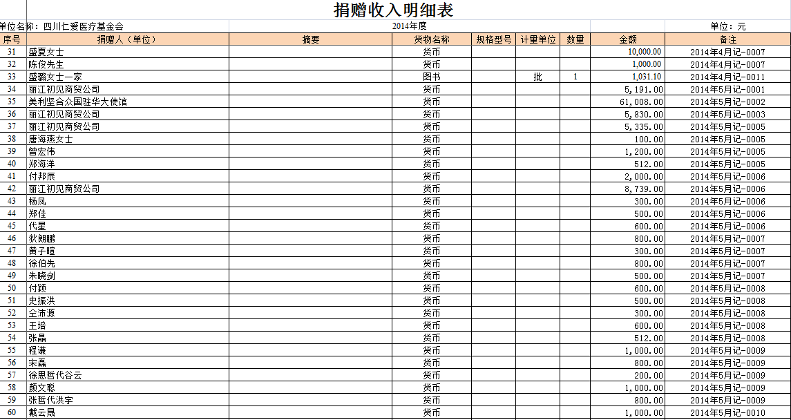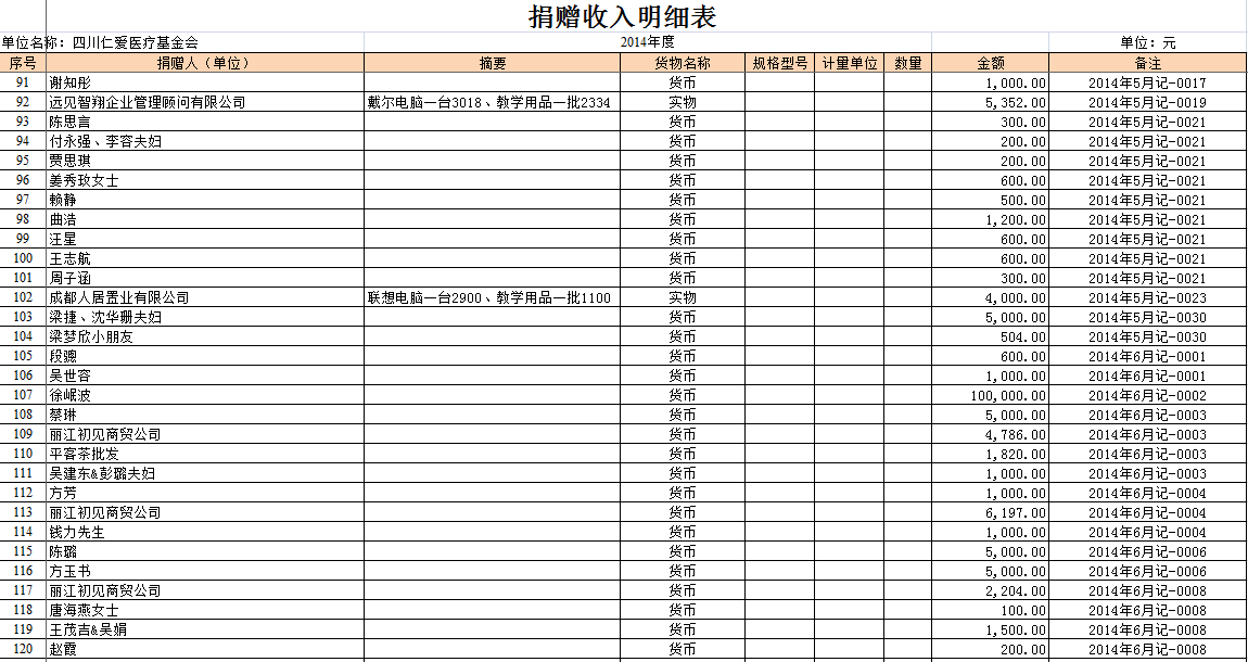 2014年全年捐赠收入和公益项目支出明细清单