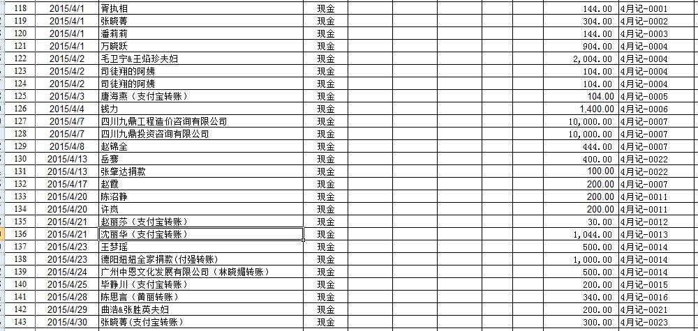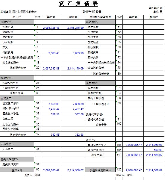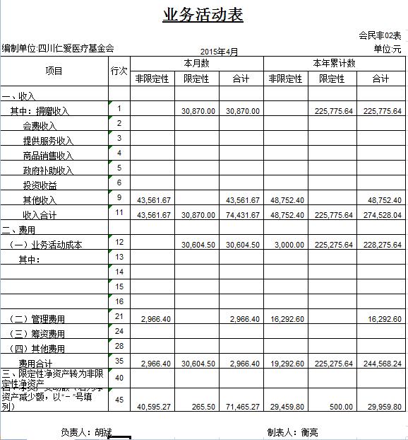2015年4月捐赠收入及财务报表