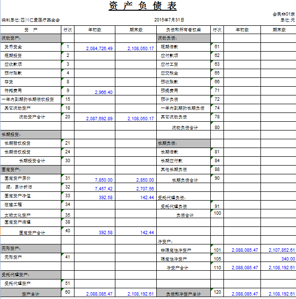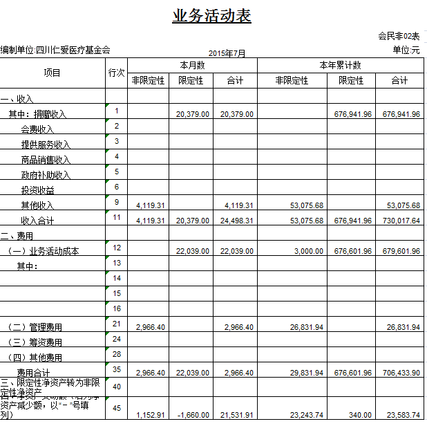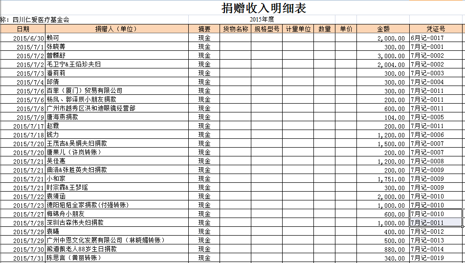 2015年7月捐赠收入及财务报表