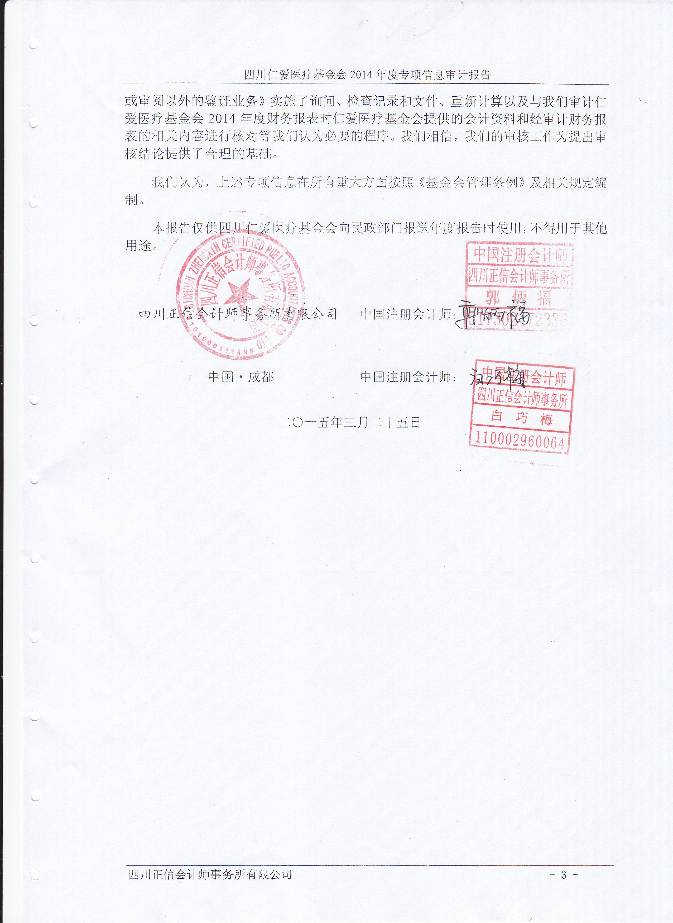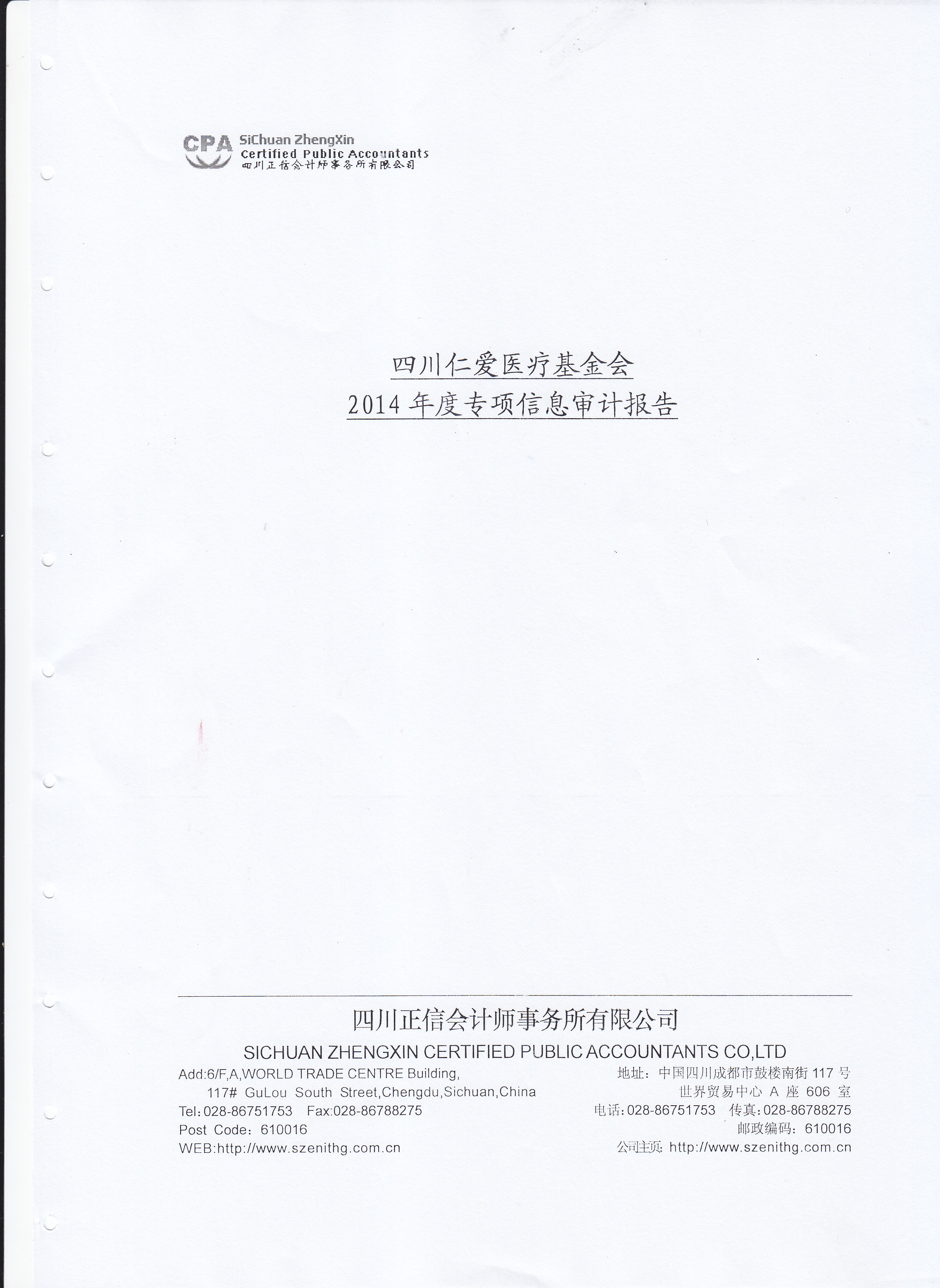 四川仁爱医疗基金会 2014年度专项信息审计报告