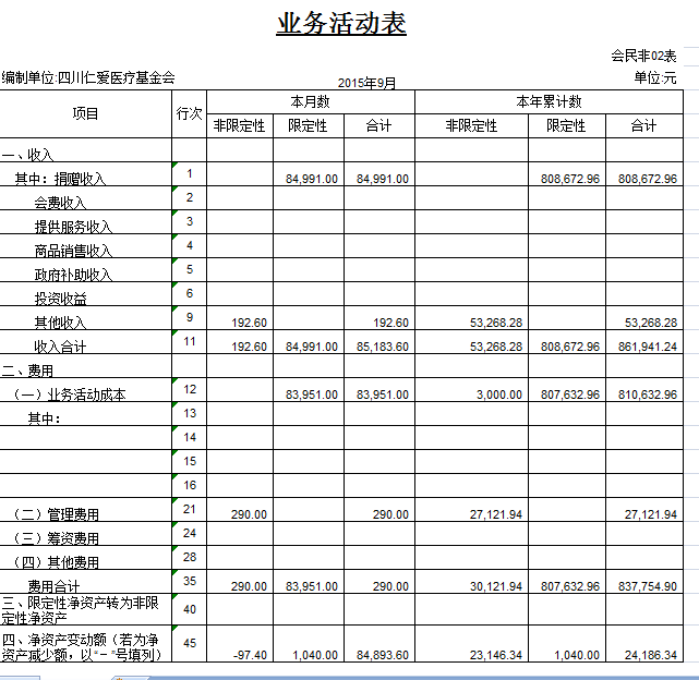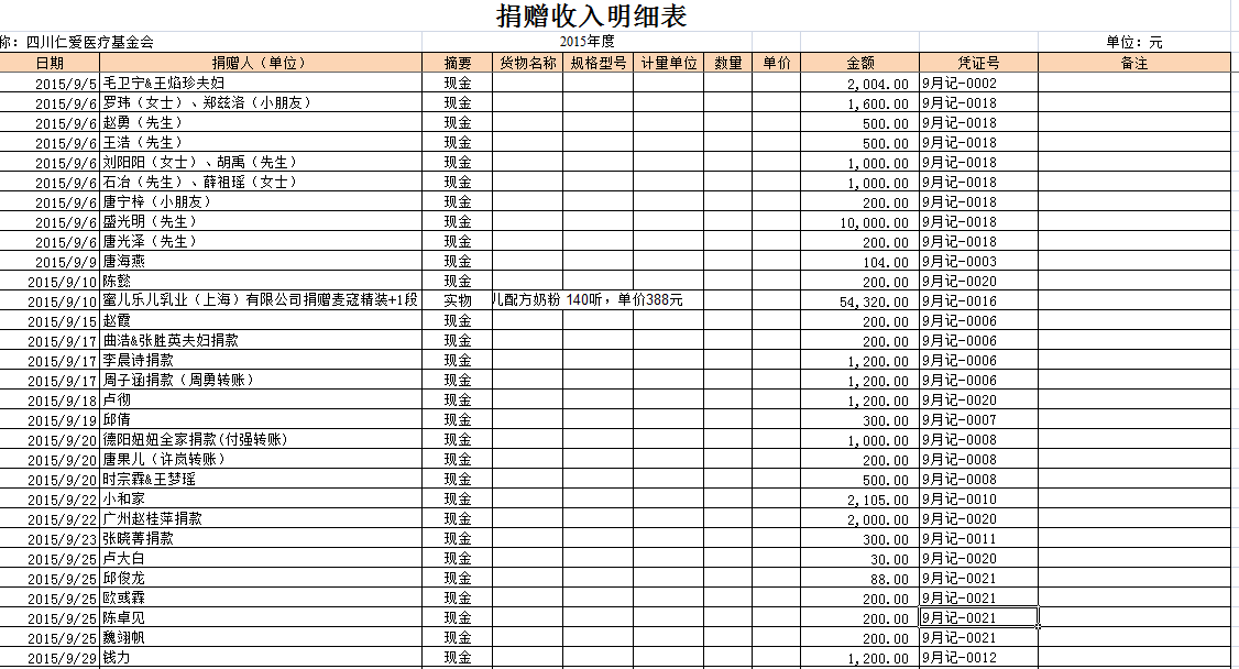 2015年9月捐赠收入及财务报表