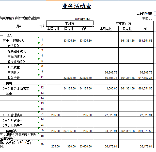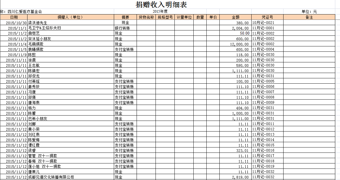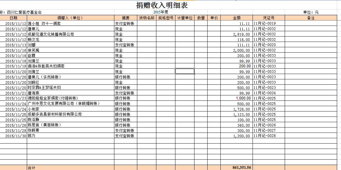 2015年11月捐赠收入及财务报表