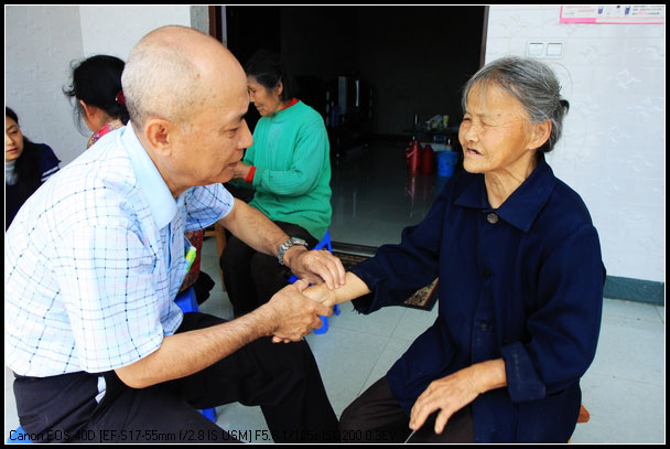 在绵竹土门乡下,诊治疾病有帕金森症、高血压、关节痛、坐骨神经痛、右股骨颈骨折纲钉固定手术后疼痛…等,在绵竹拱星有位宋女士因被屋倒所压伤,造成第一腰脊椎骨折而致下半身瘫痪及什邡妈祖故里有位18岁男高中生亦因屋倒压伤第12胸脊椎骨折而造成下半身瘫痪,我们用自带的一批止痛药物治疗这些病症,令病人感到很满意,但仍有帕金森症、高血压等的药物没携带,则建议他们自购,或待下次再来时补给他们,另对瘫痪的病人则鼓励他们复健治疗及灾后心理谘商。