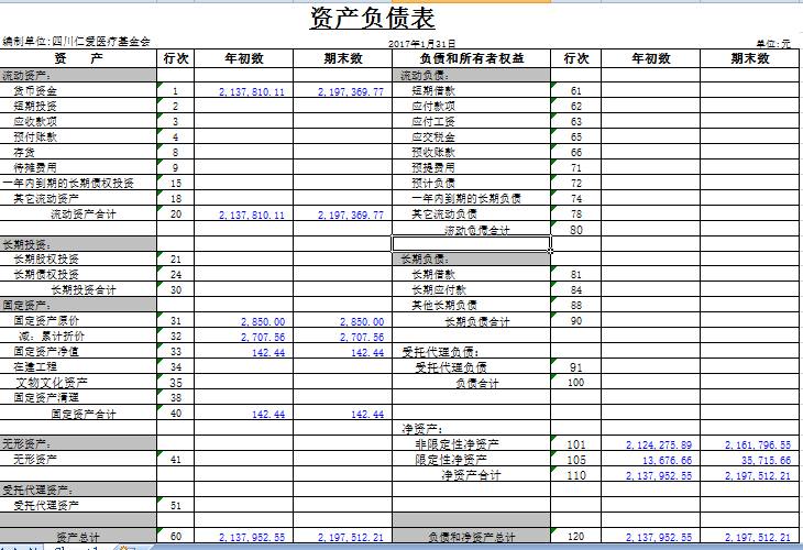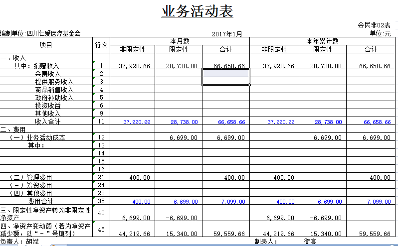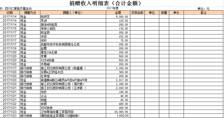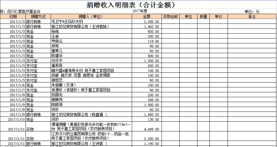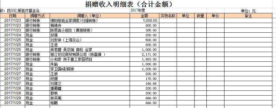 2017年1月捐赠收入及财务报表