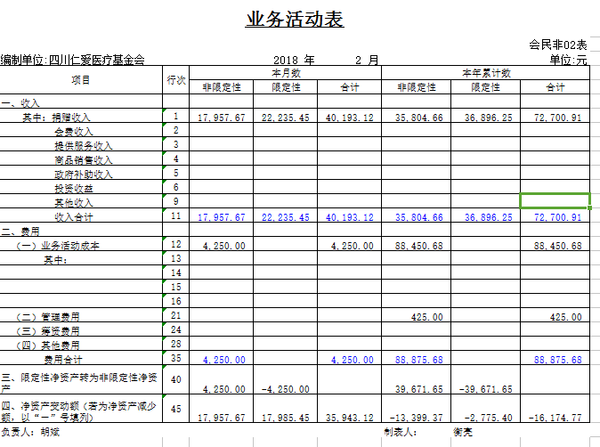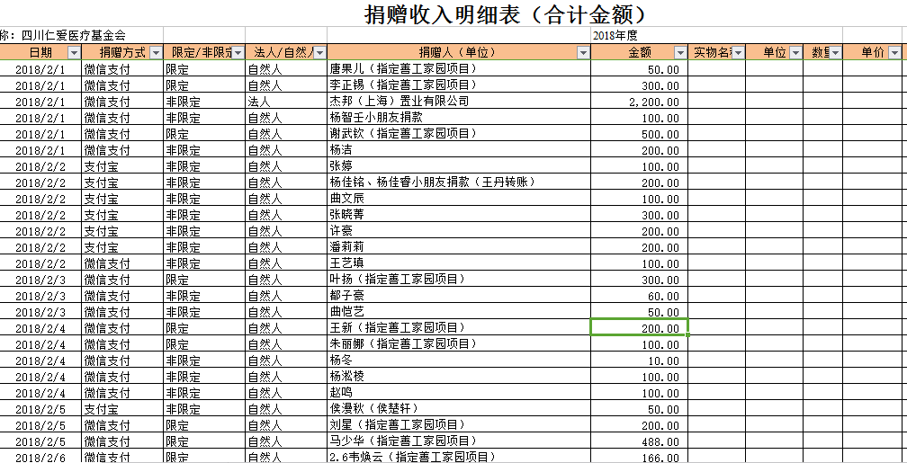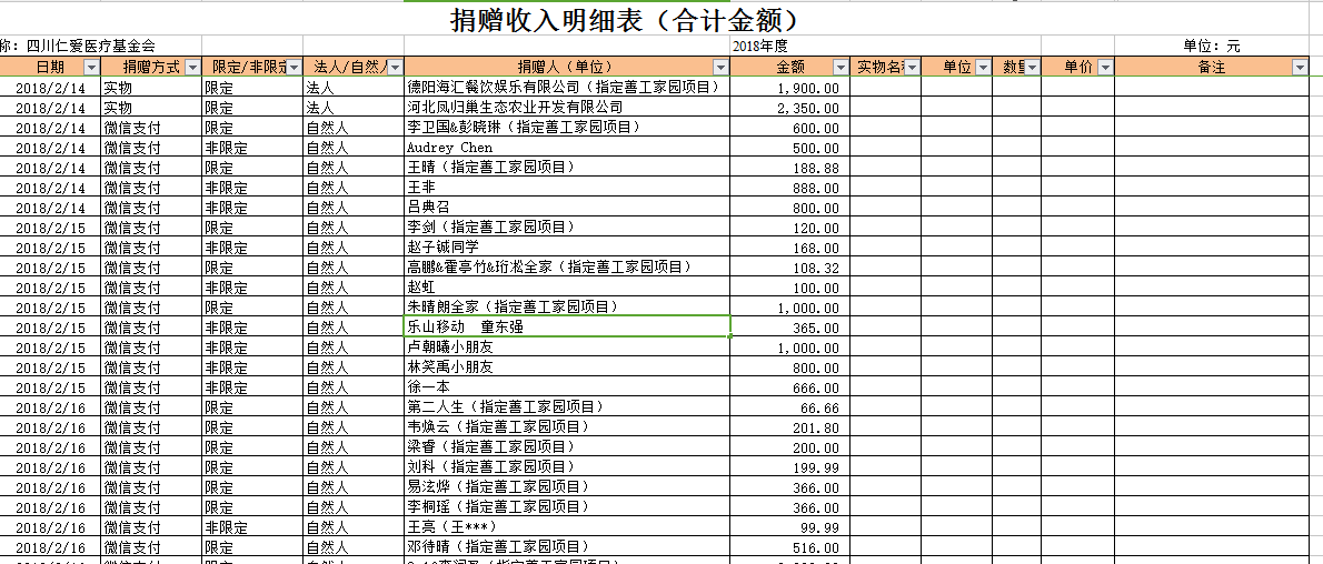 2018年2月捐赠收入及财务报表