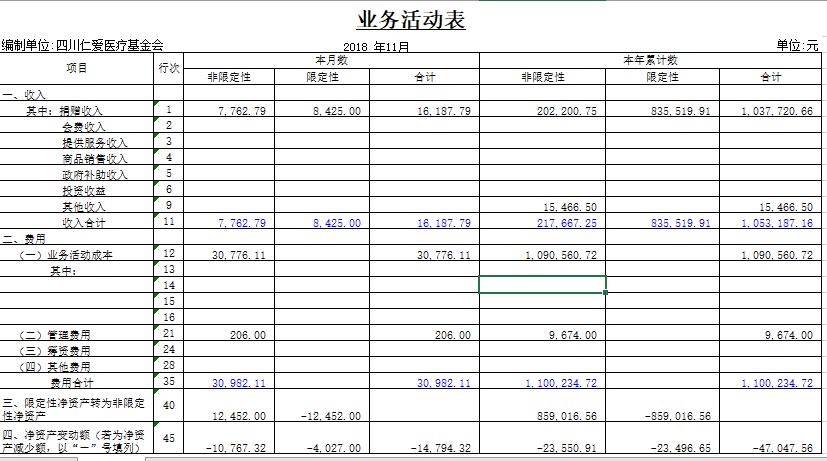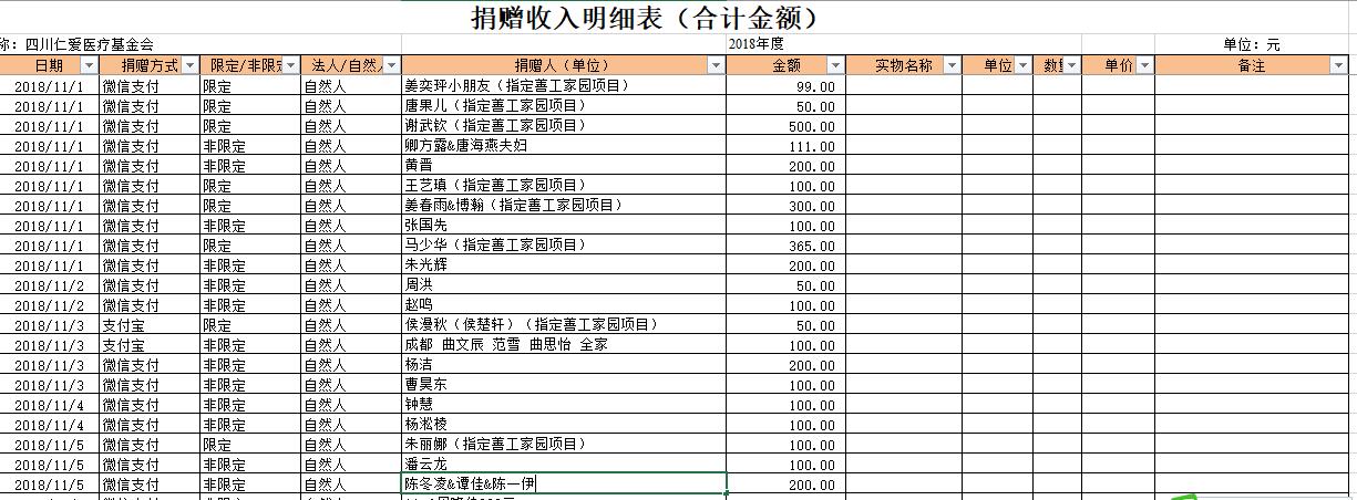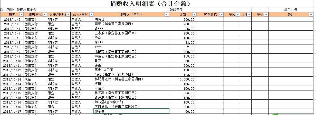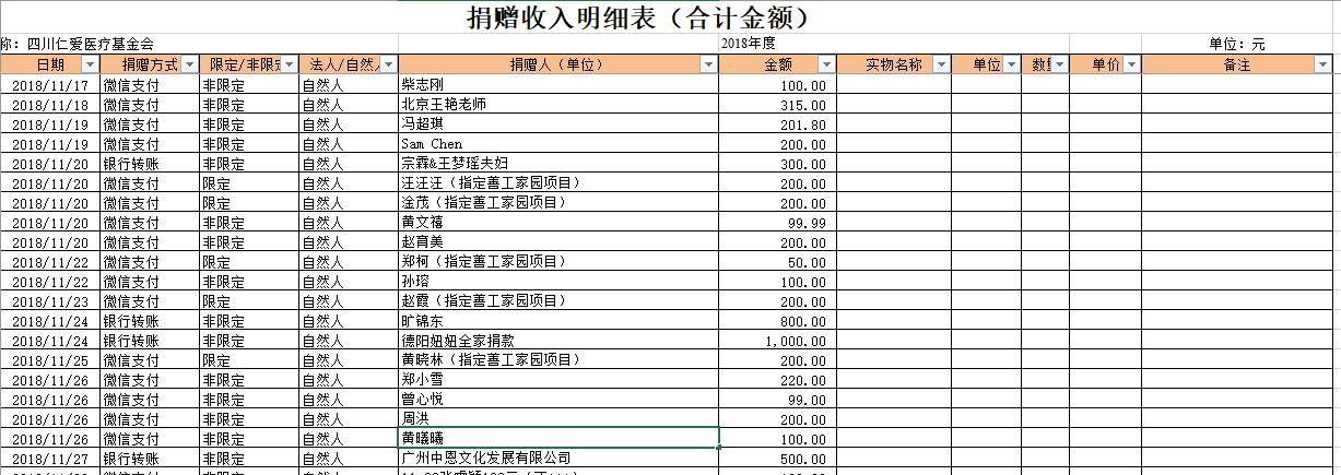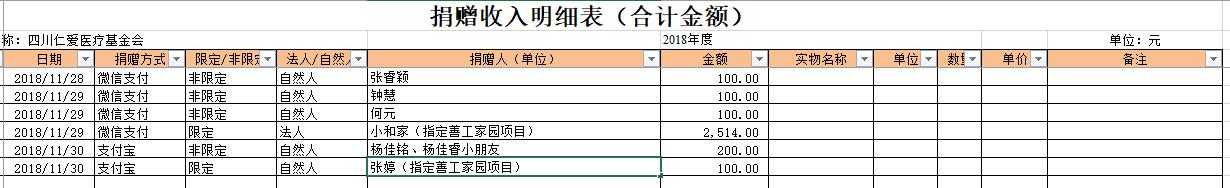 2018年11月捐赠收入及财务报表