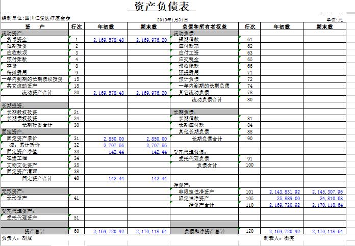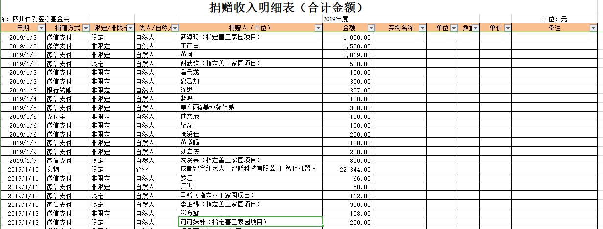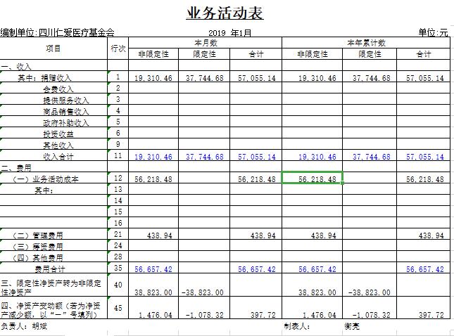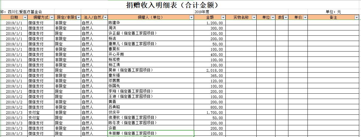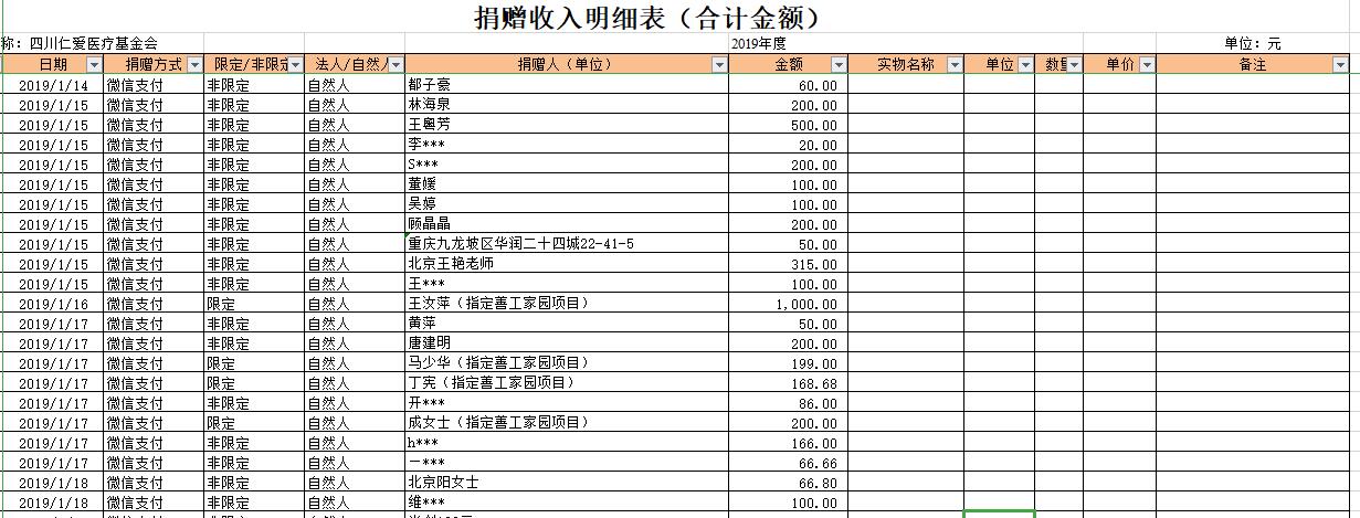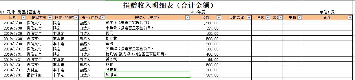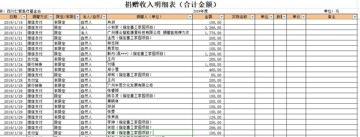 2019年1月捐赠收入及财务报表