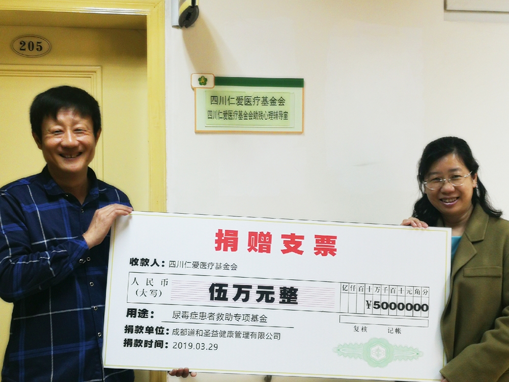 2019年3月11日,经过前期大量协调与筹备,四川仁爱医疗基金会接受成都道和圣益健康管理有限公司的申请,在基金会下设立 “尿毒症患者救助专项基金”。