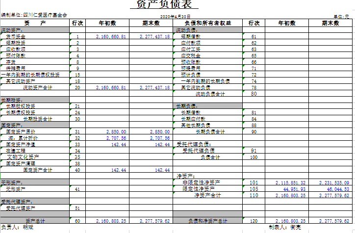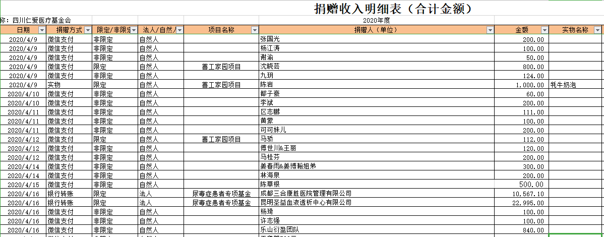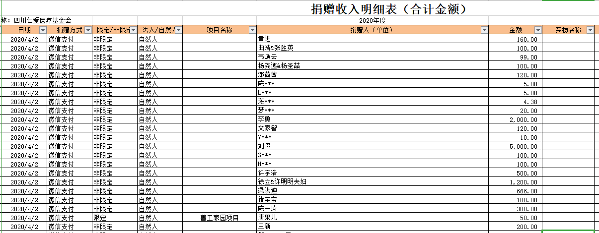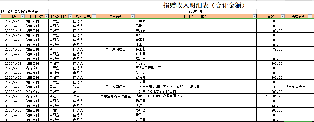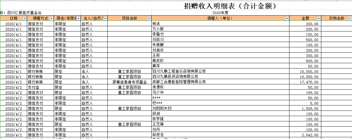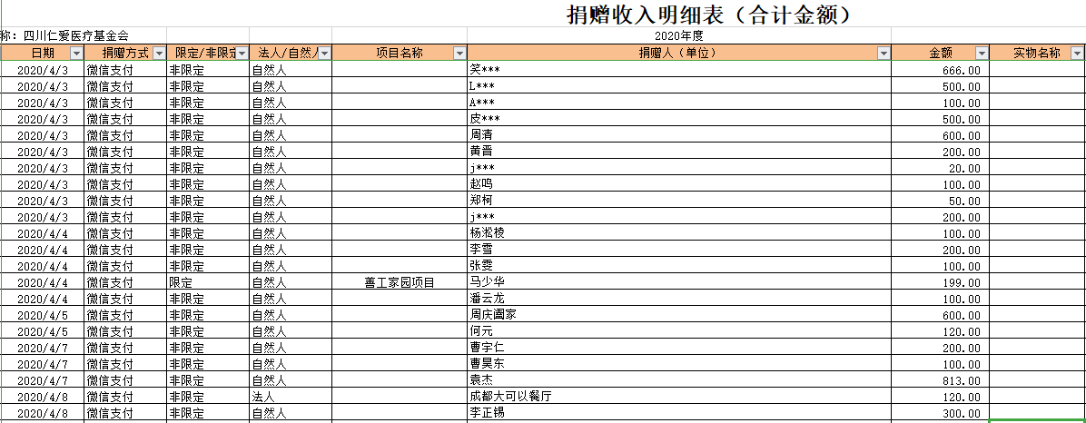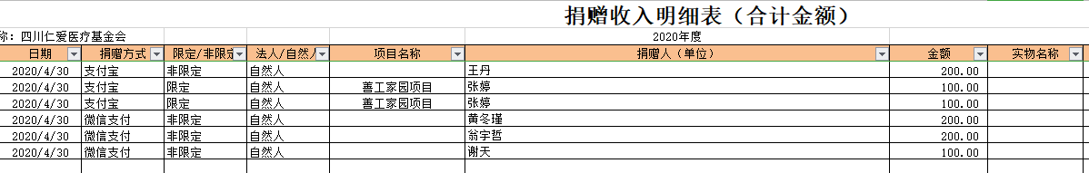 2020年4月捐赠收入及财务报表