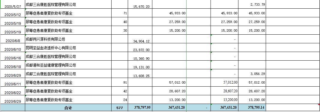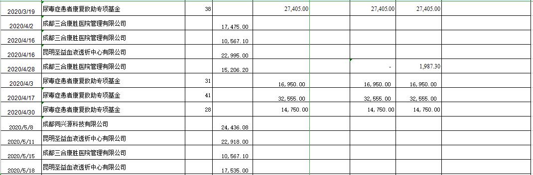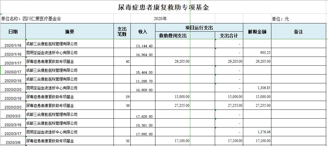 2020年上半年“尿毒症患者康复救助专项基金”收支明细