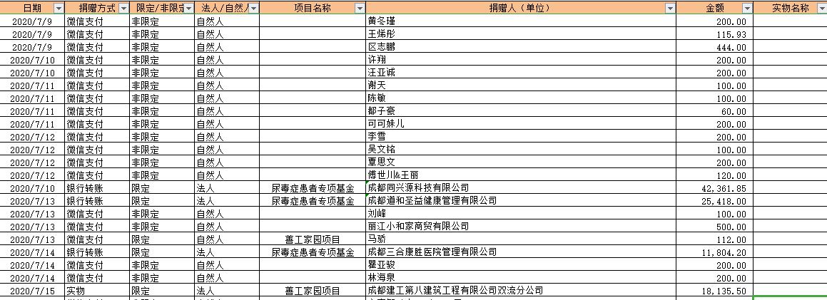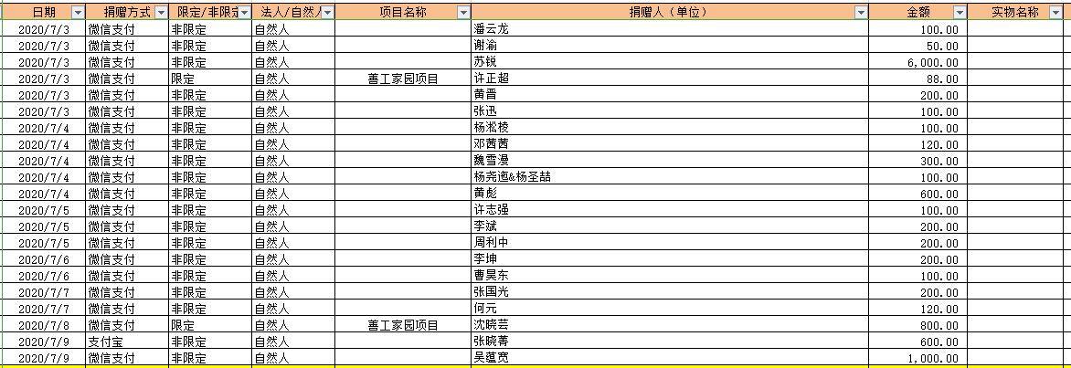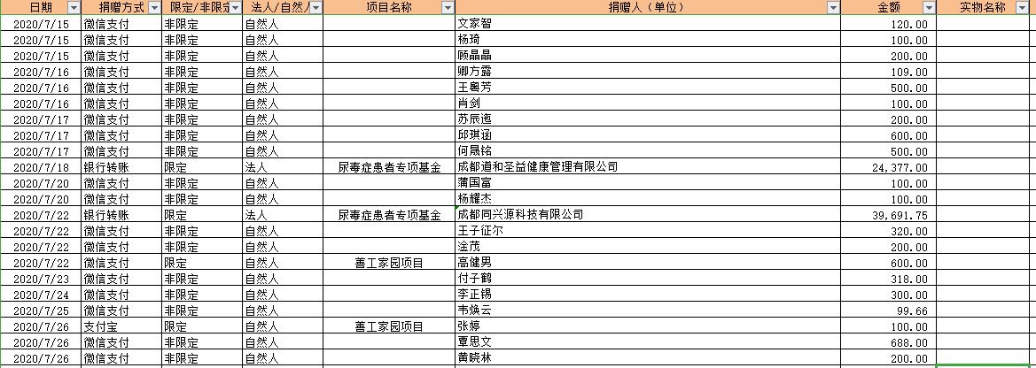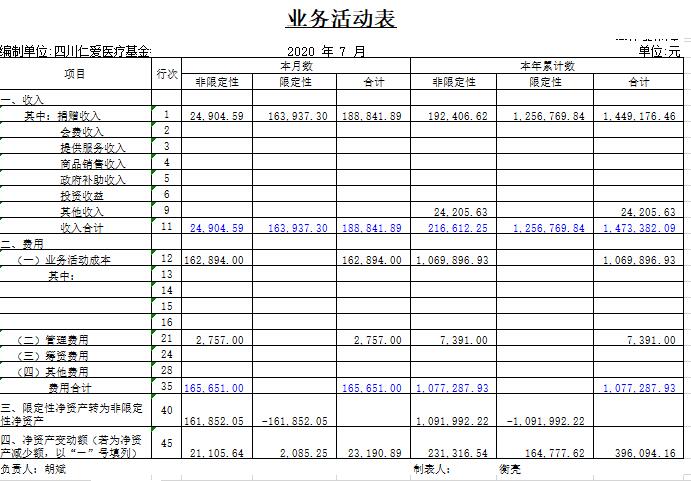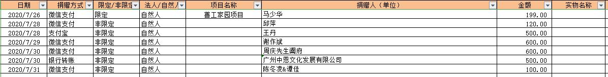 2020年7月捐赠收入及财务报表