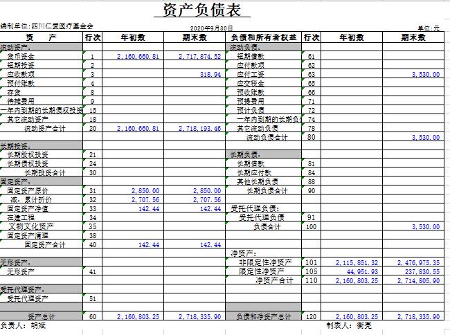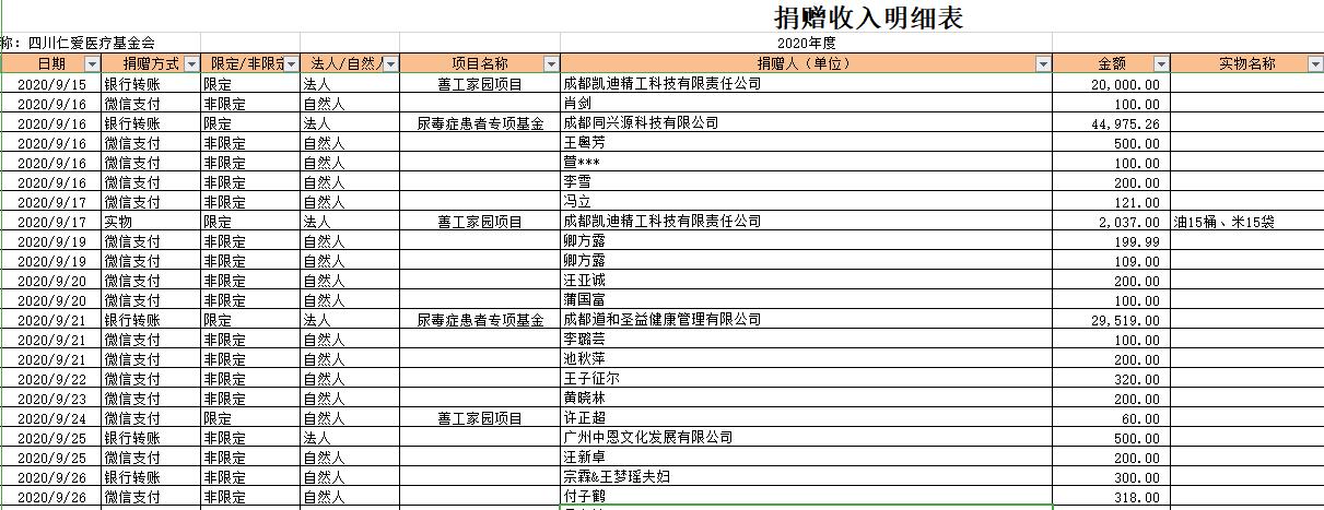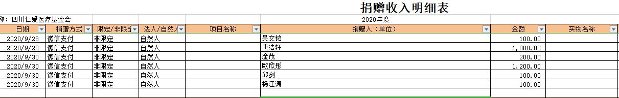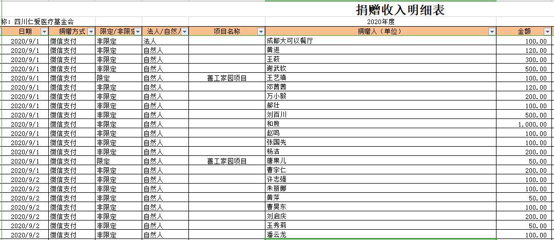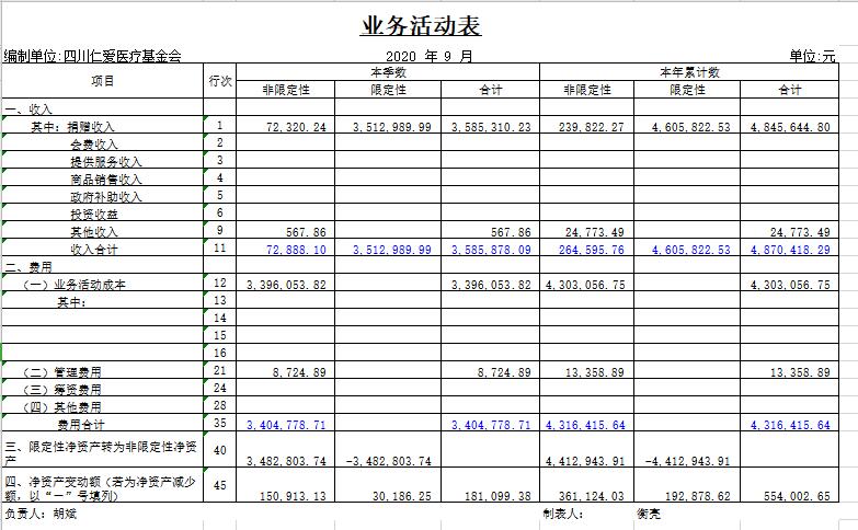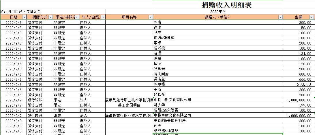 2020年9月捐赠收入及财务报表