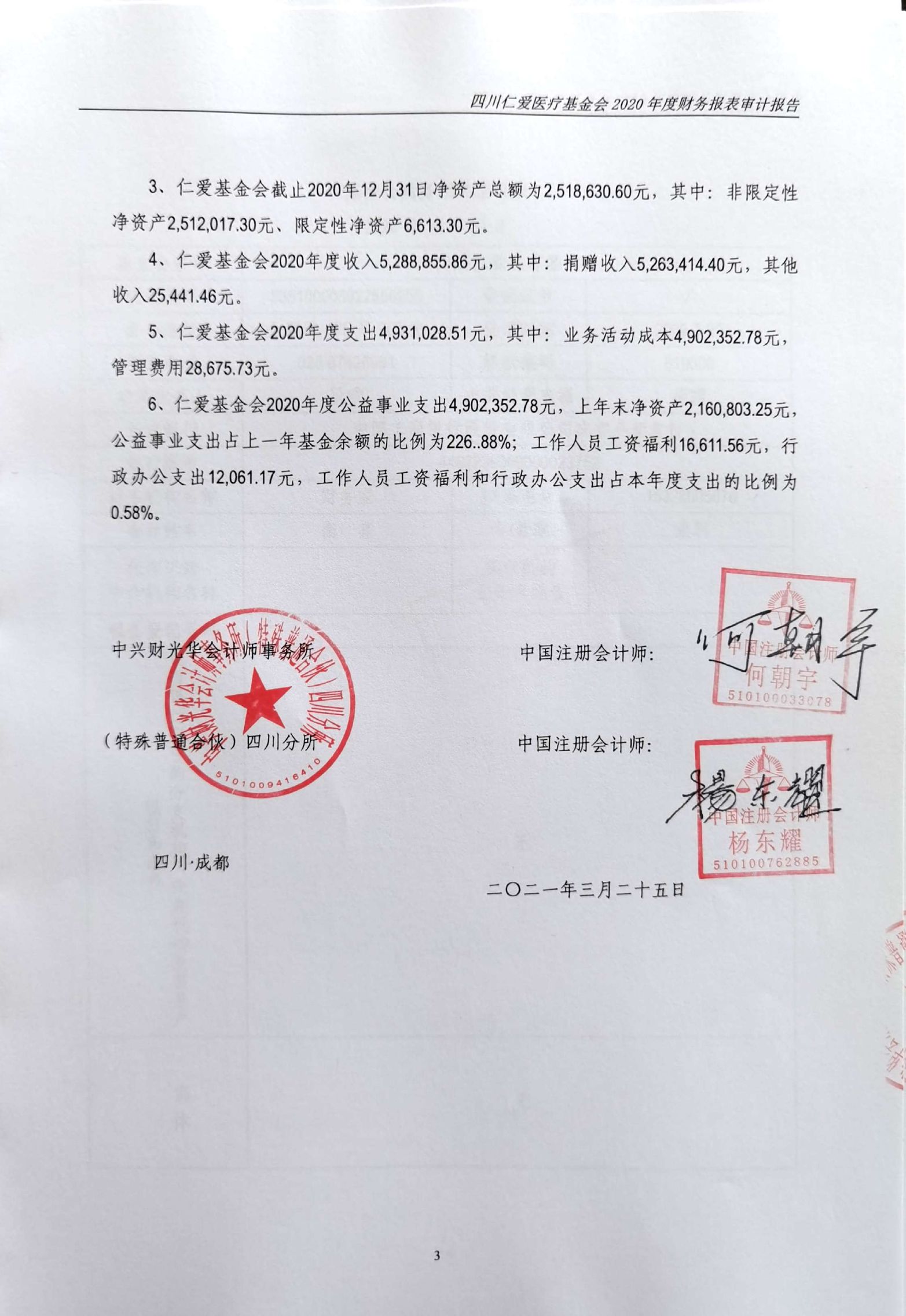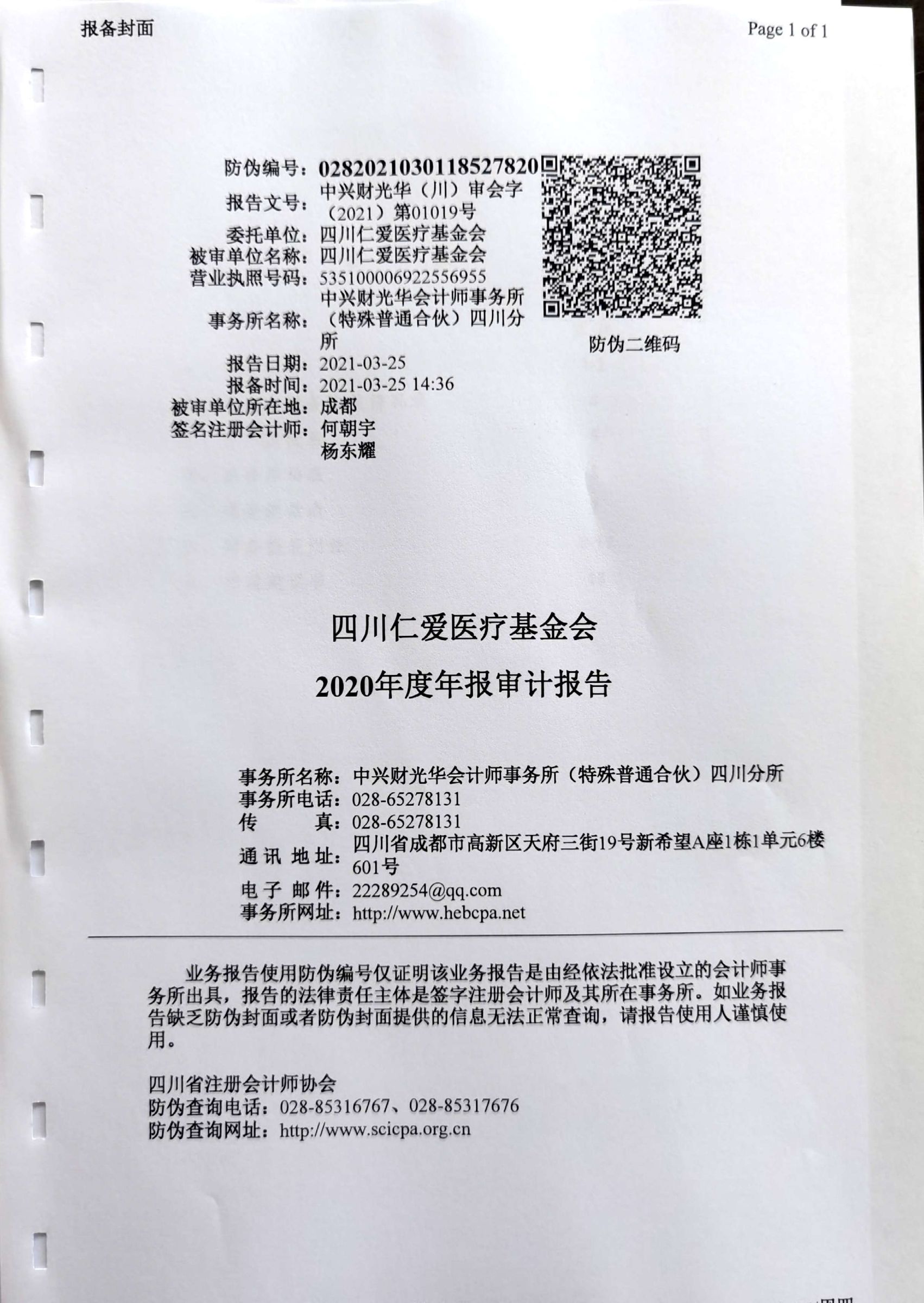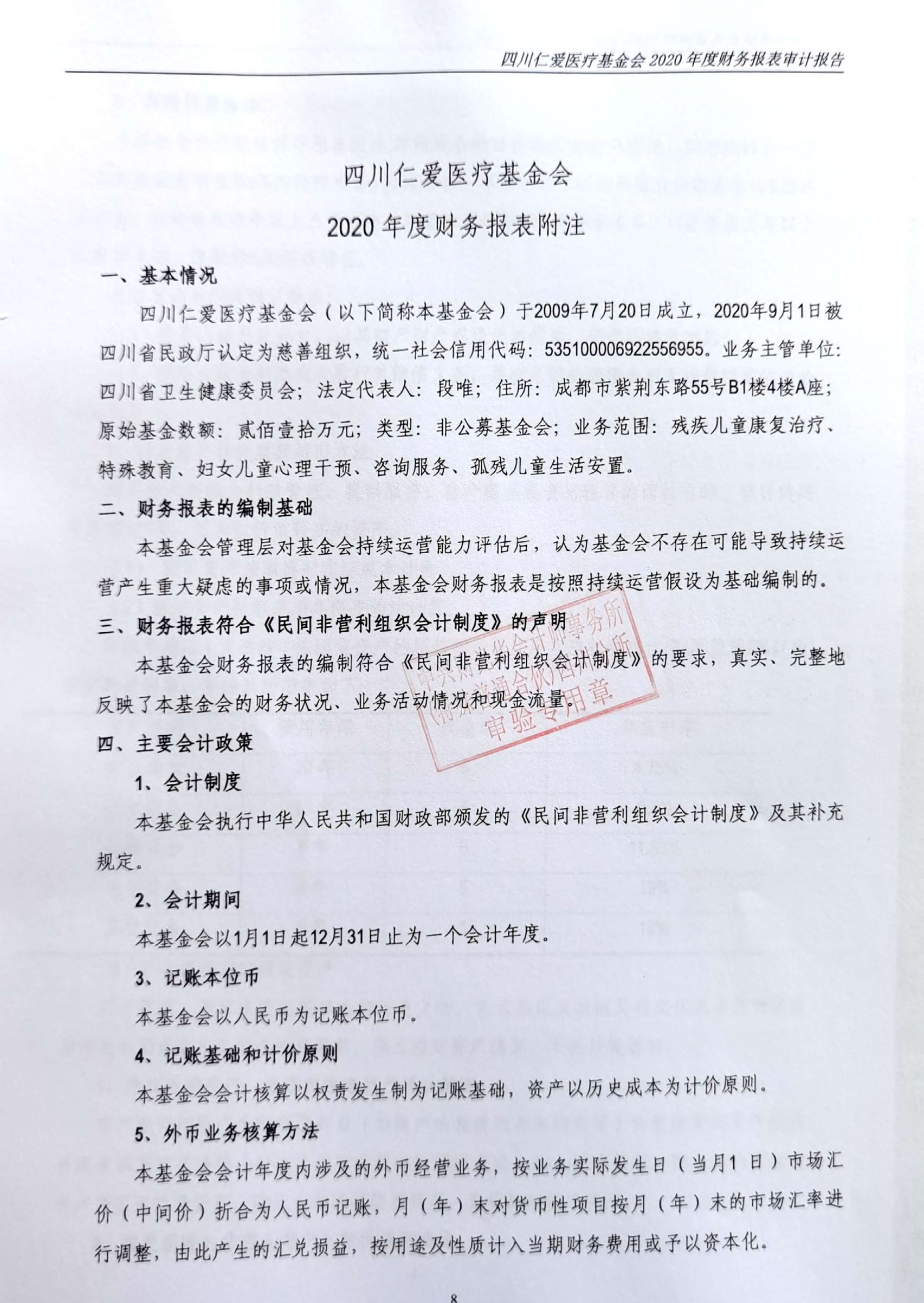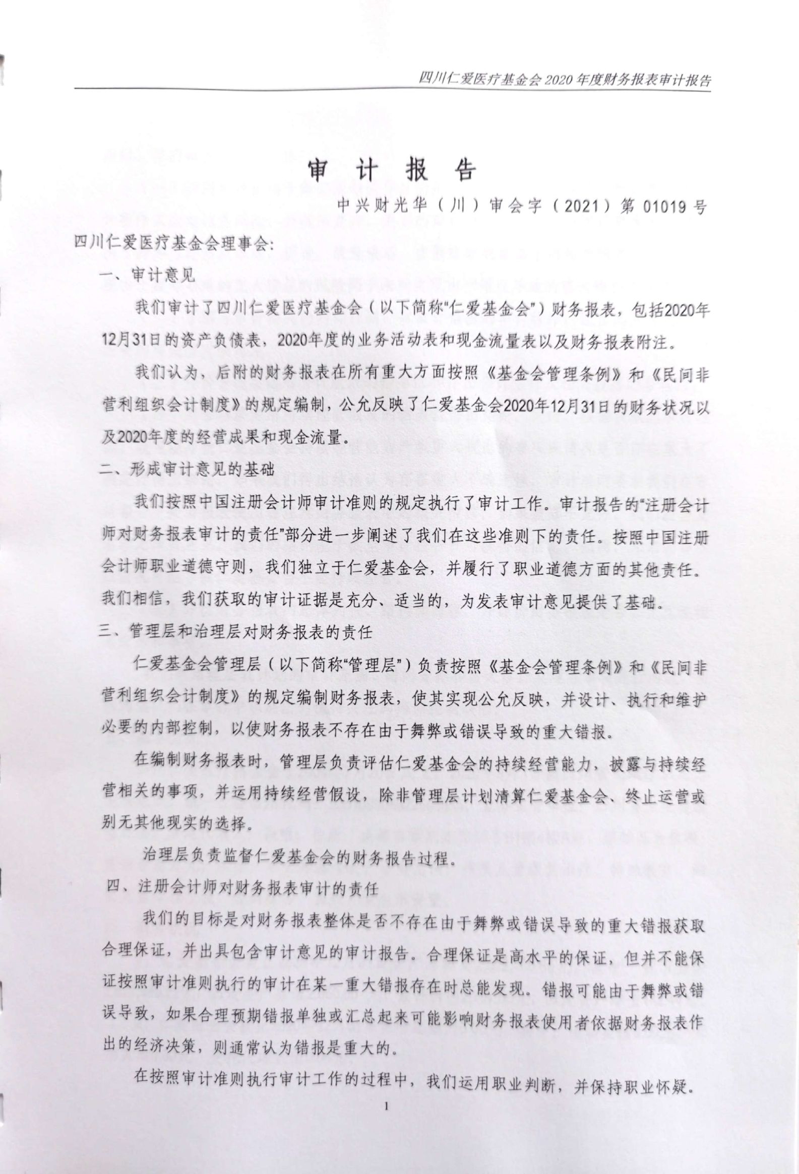 四川仁爱医疗基金会2020年年度审计报告