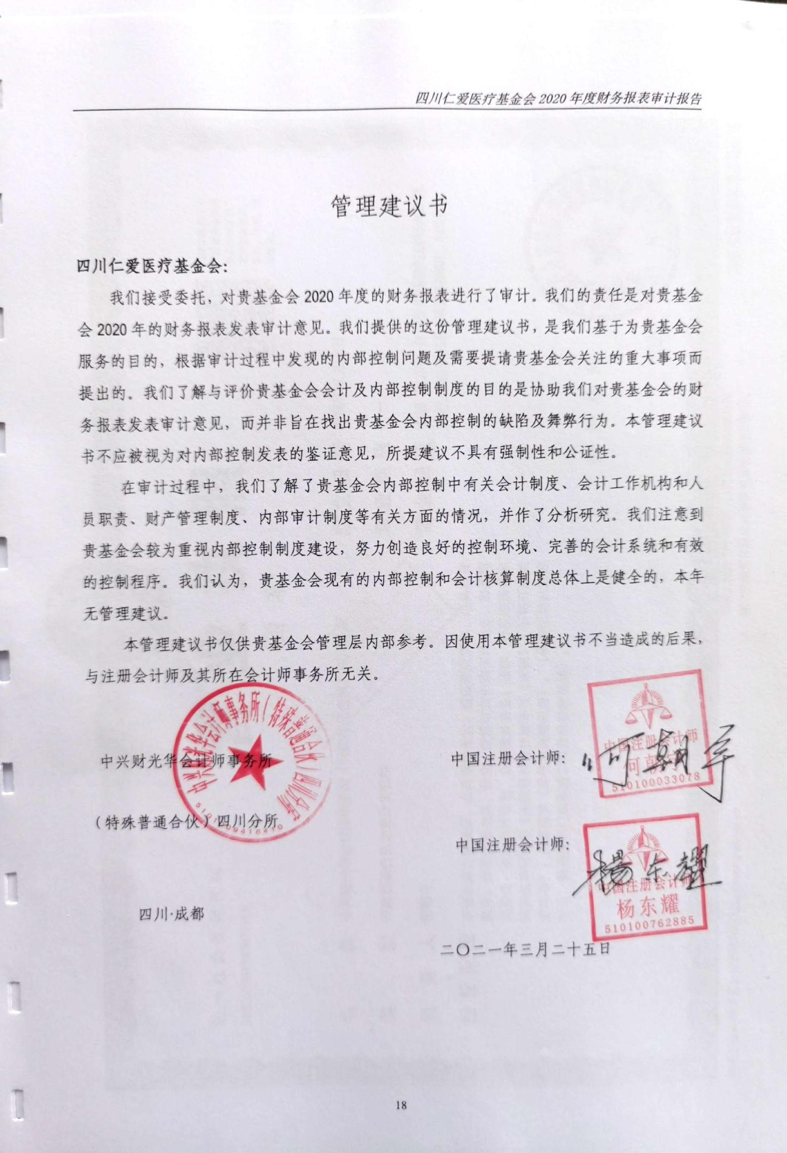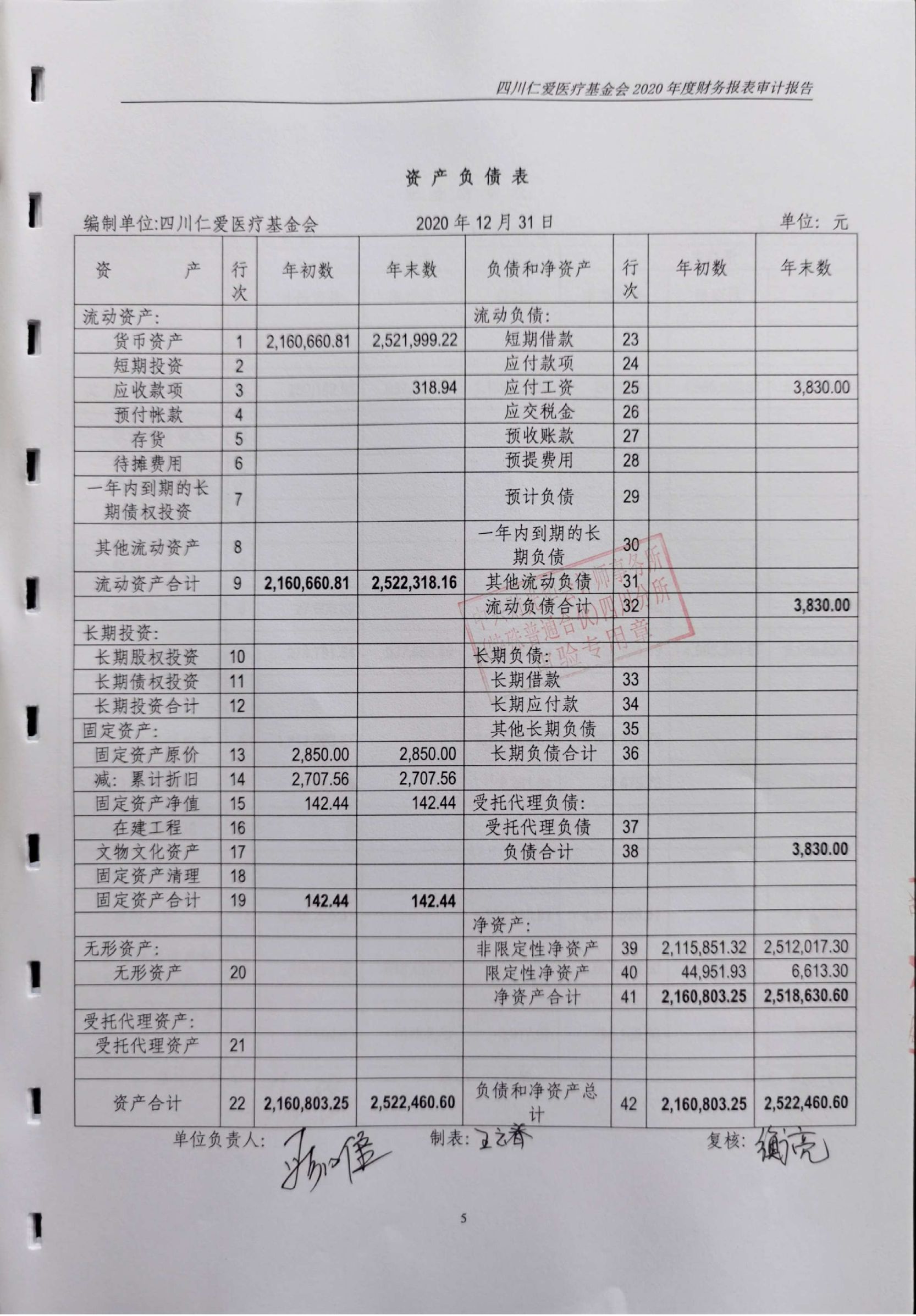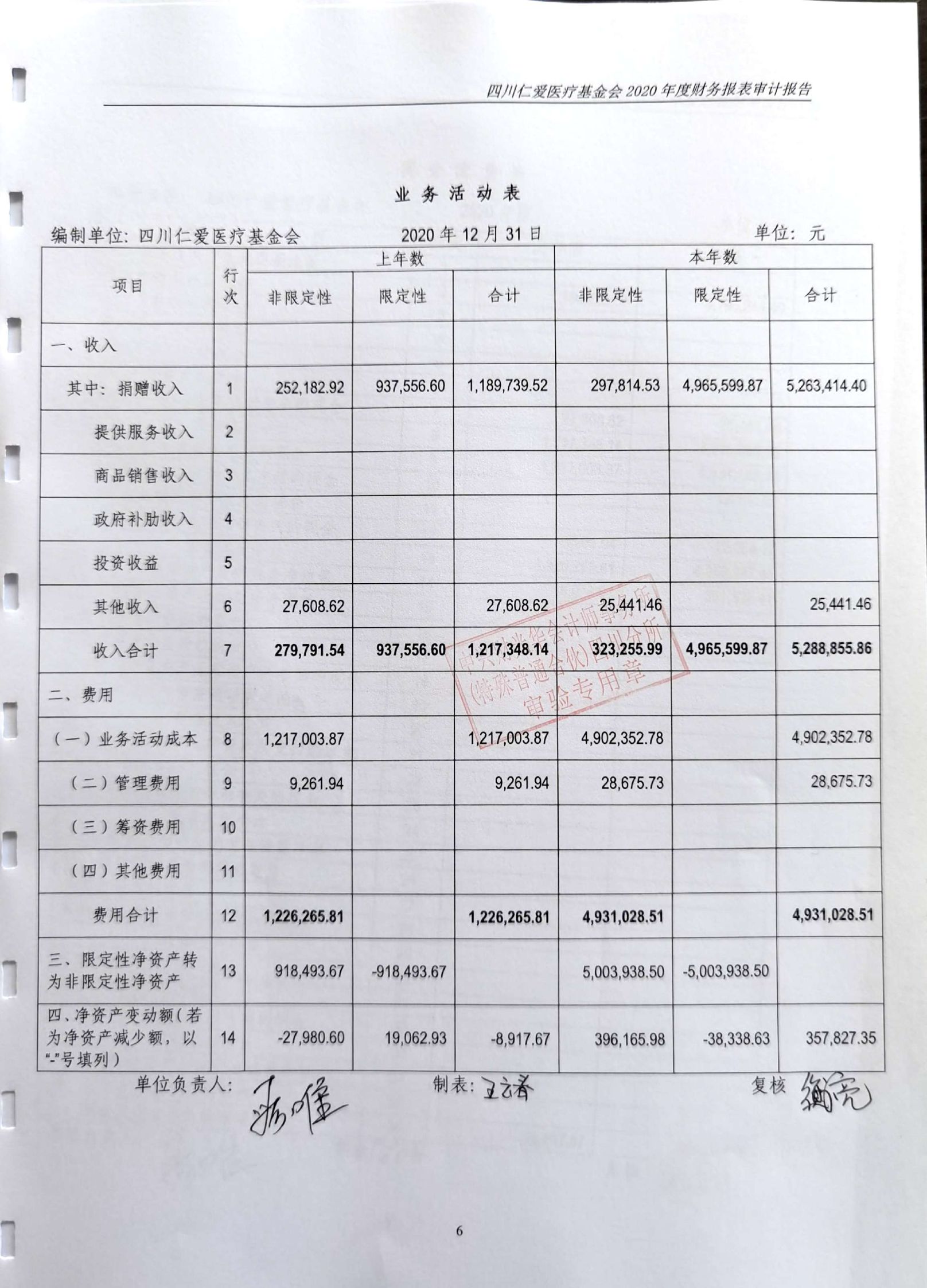 四川仁爱医疗基金会2020年年度审计报告