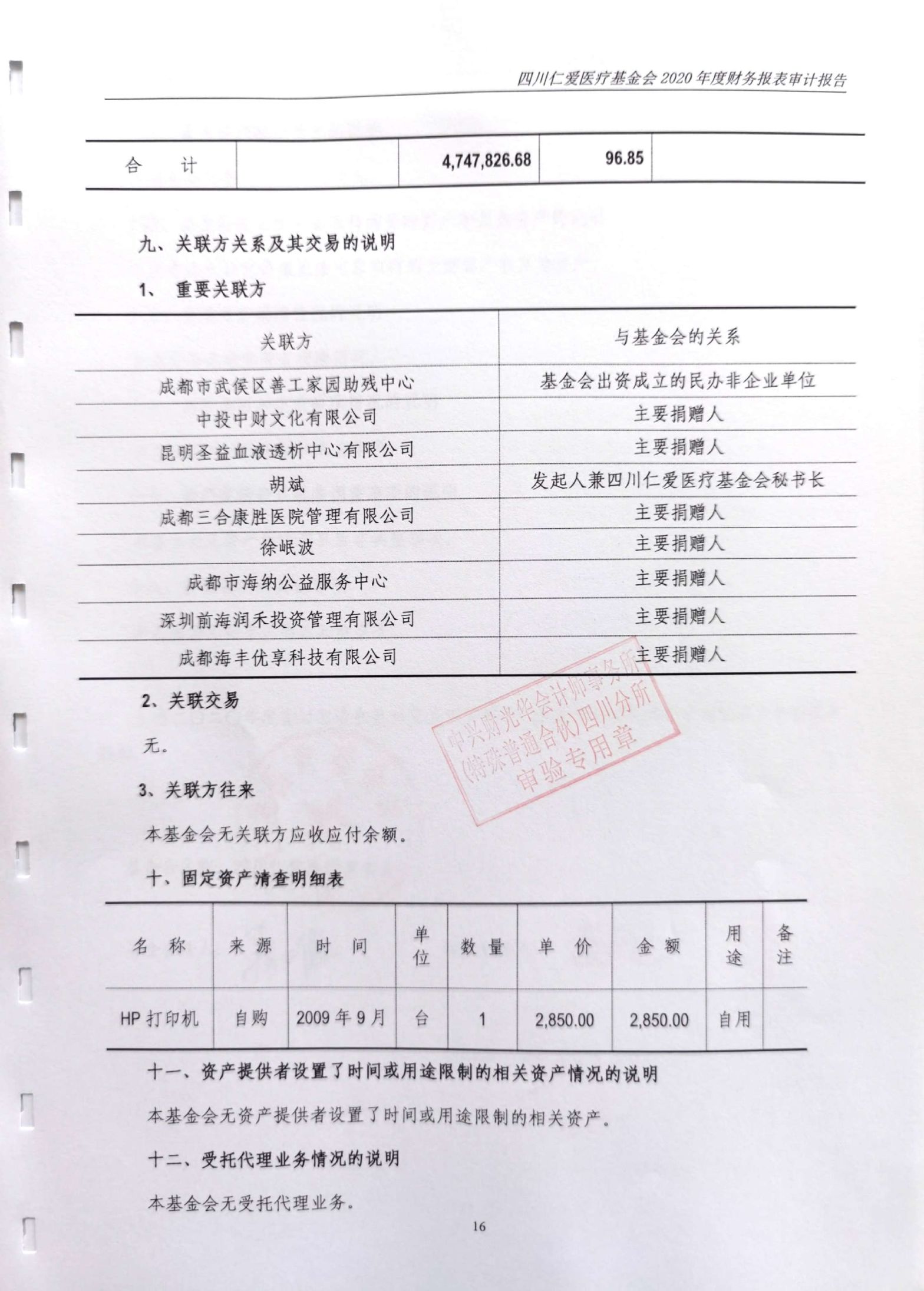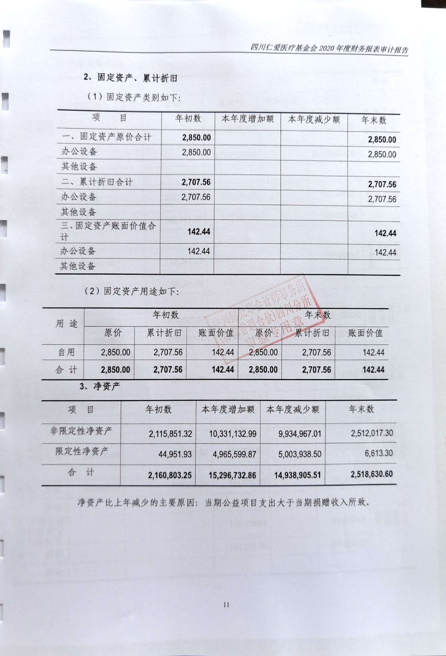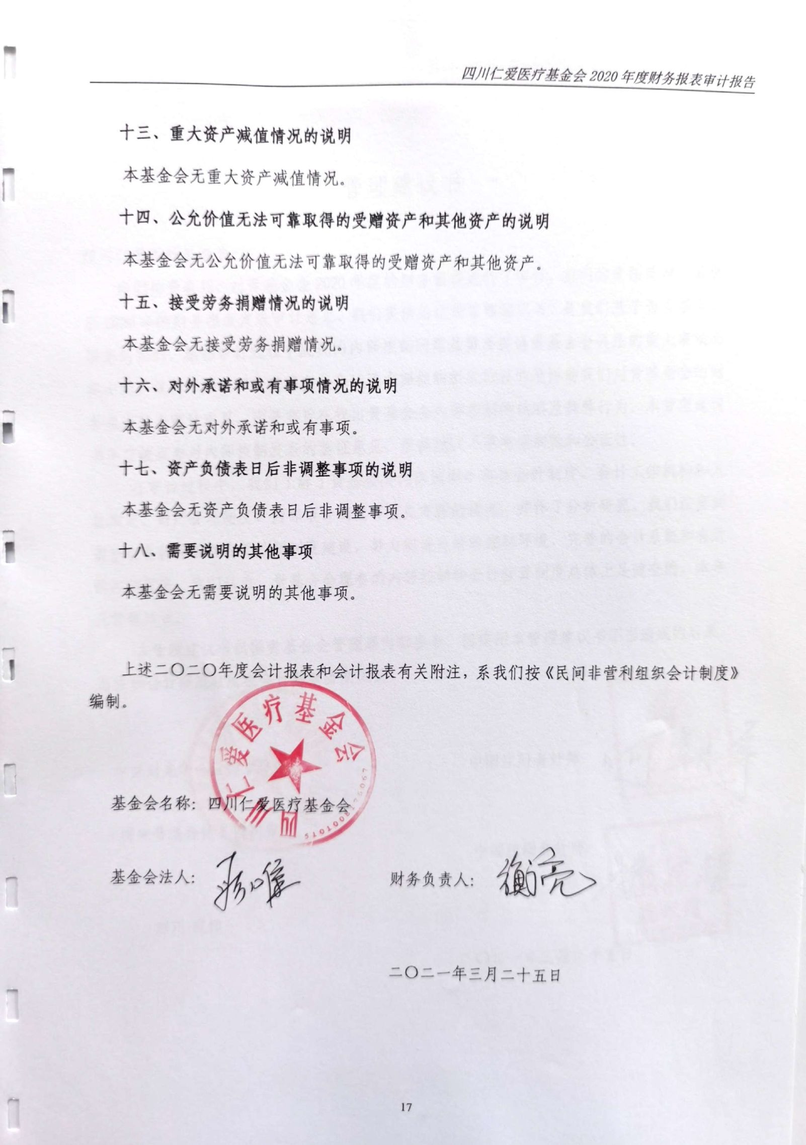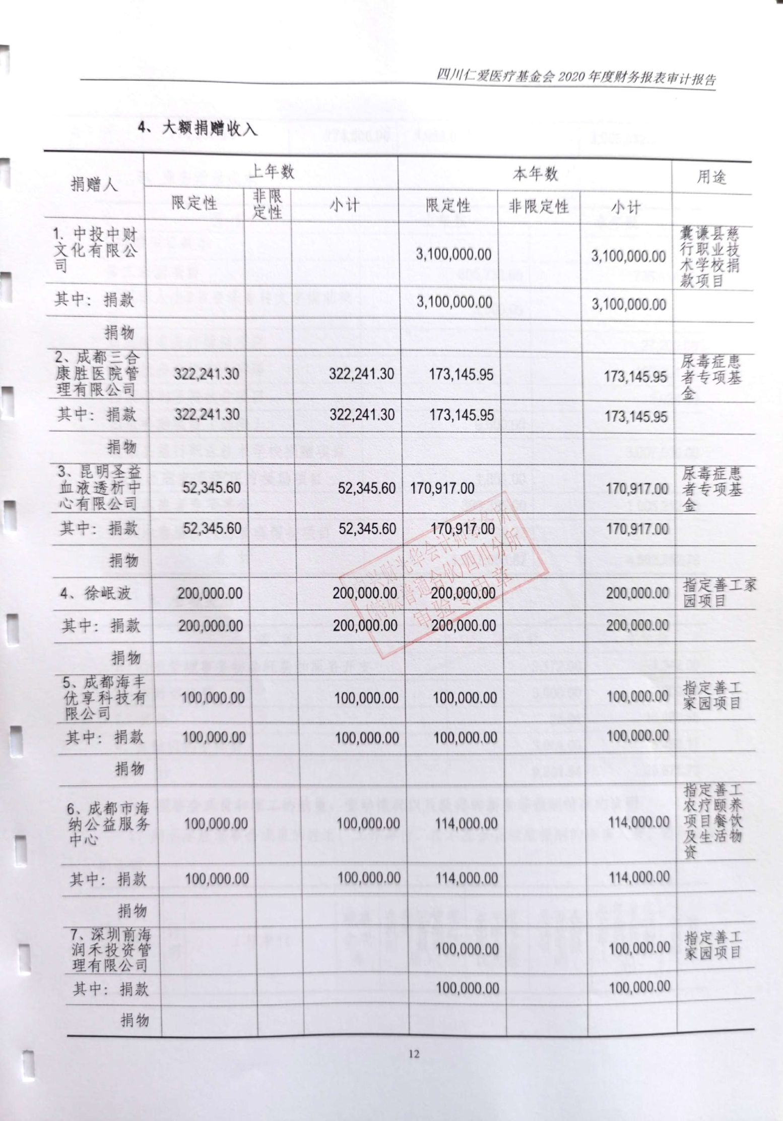 四川仁爱医疗基金会2020年年度审计报告