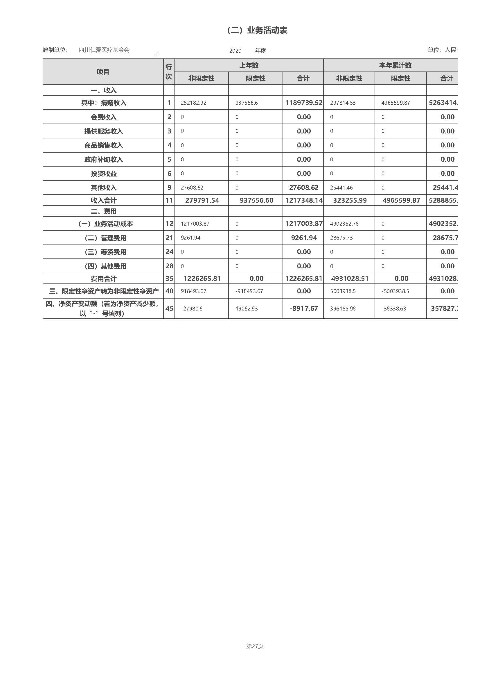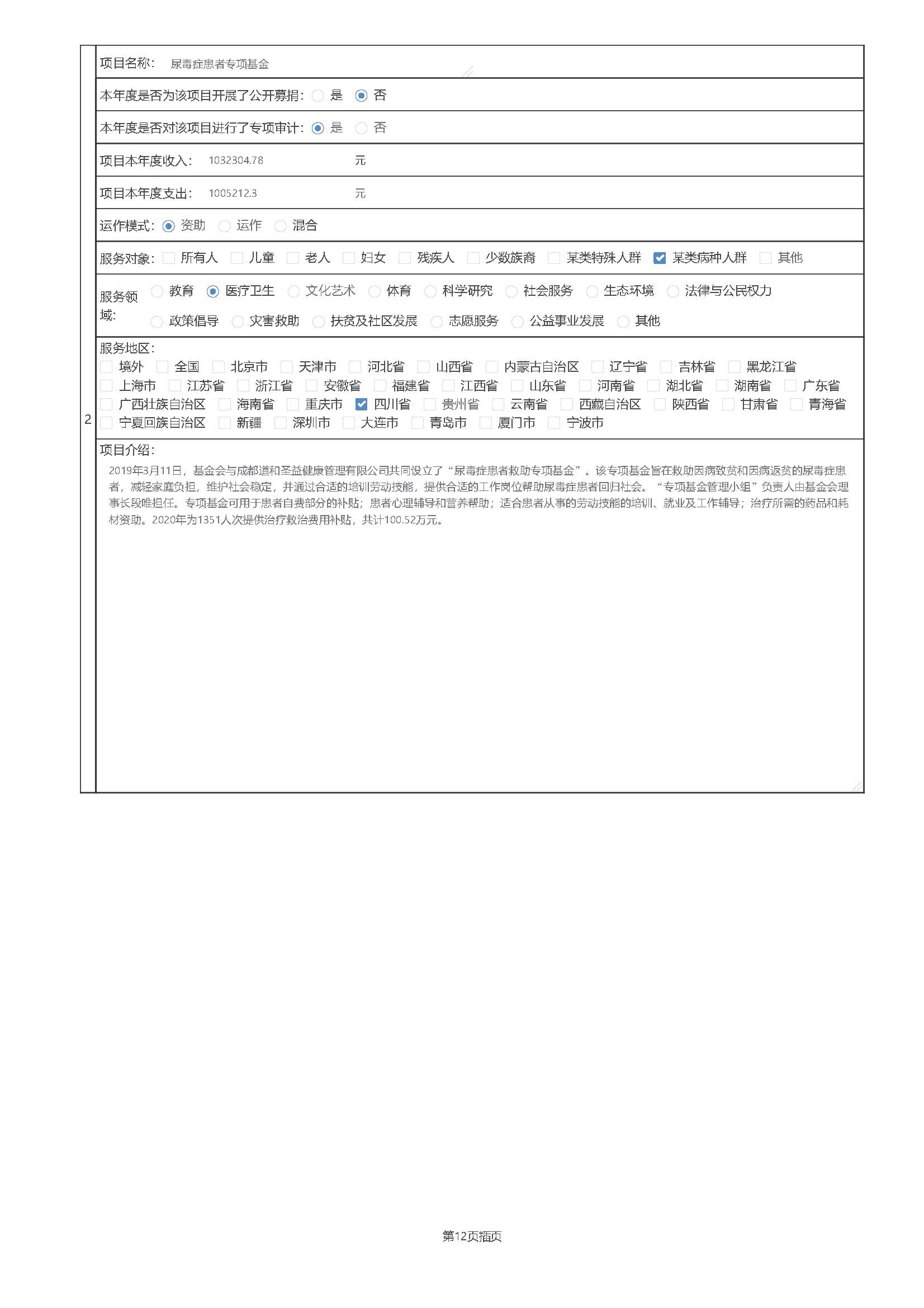 四川仁爱医疗基金会2020年年度工作报告(全文)
