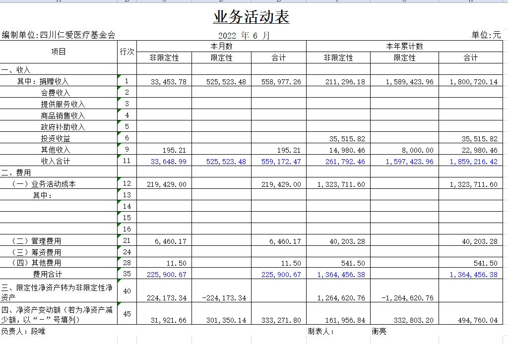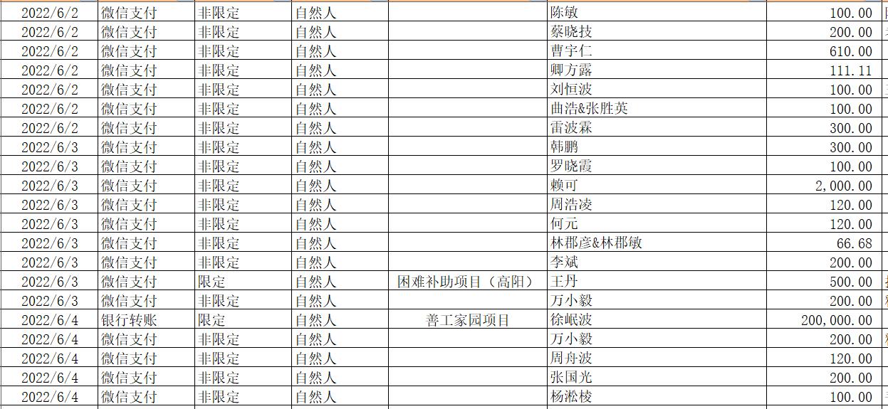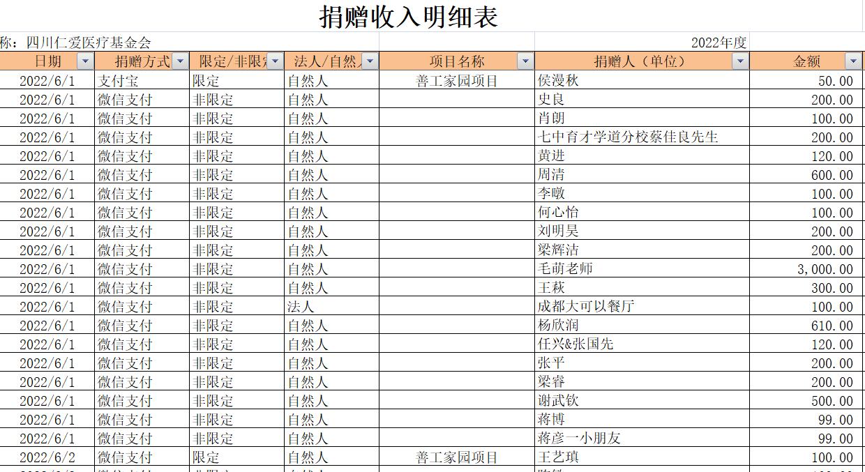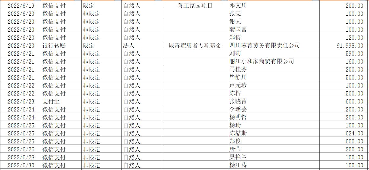 2022年6月捐赠收入及财务报表
