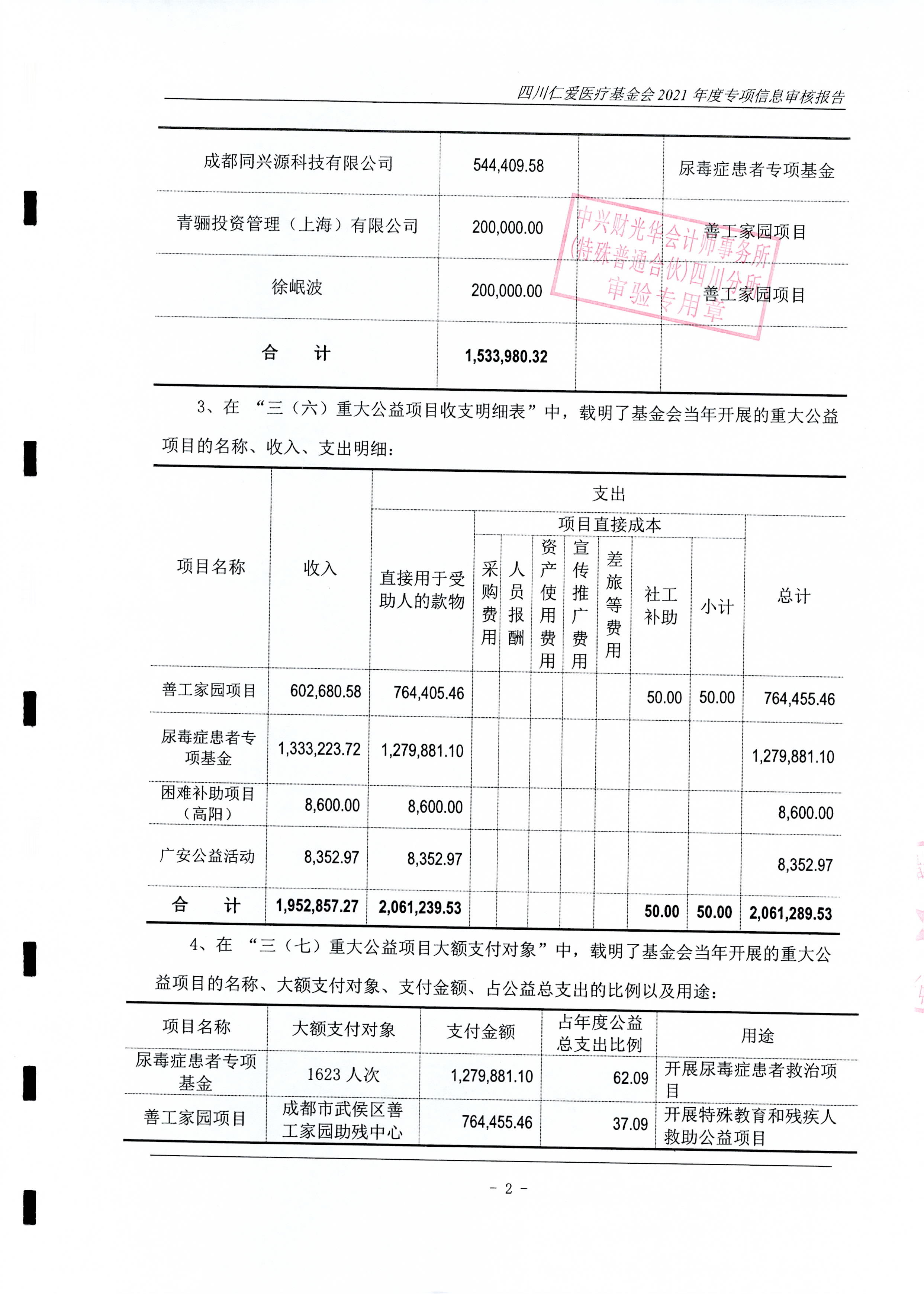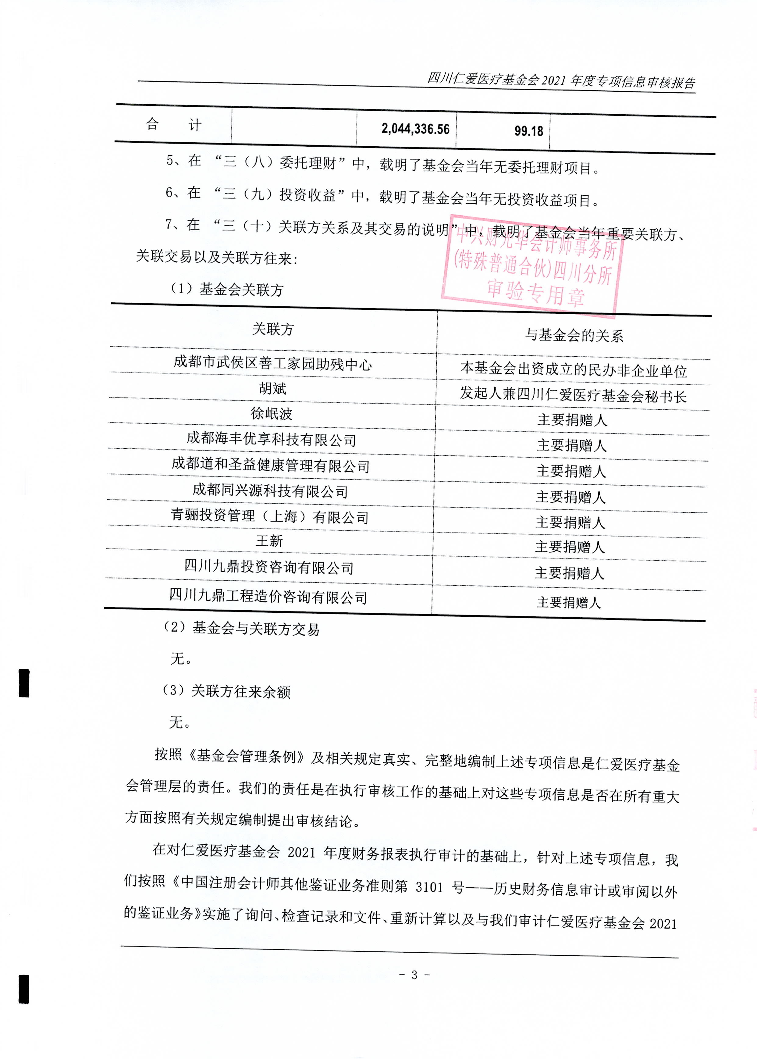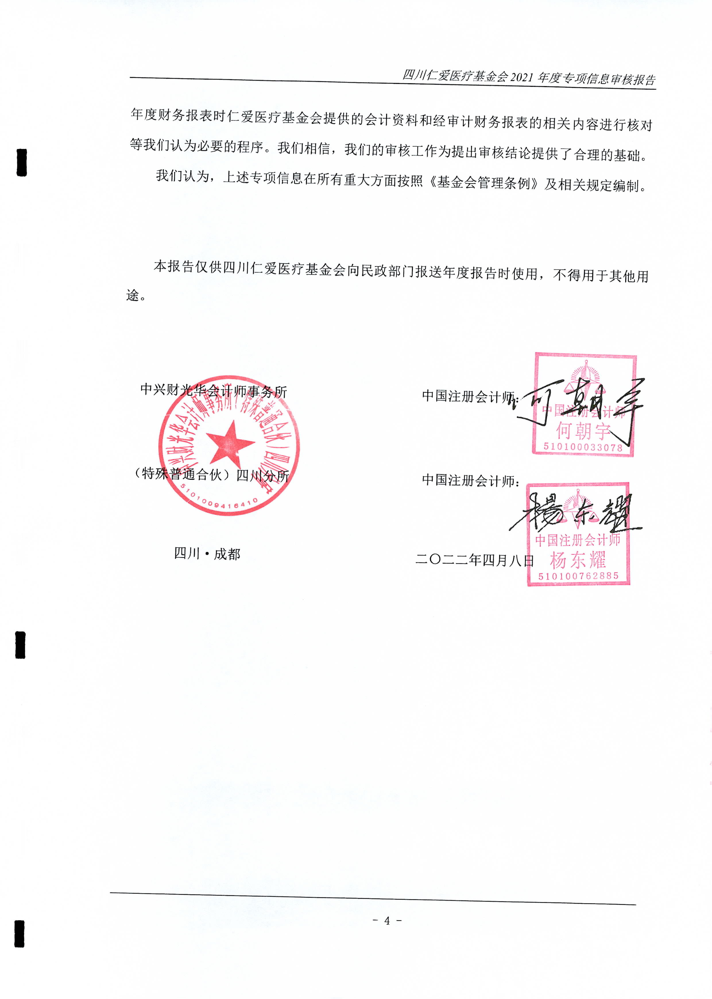 四川仁爱医疗基金会2021年年度专项审计报告