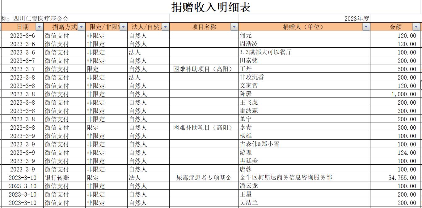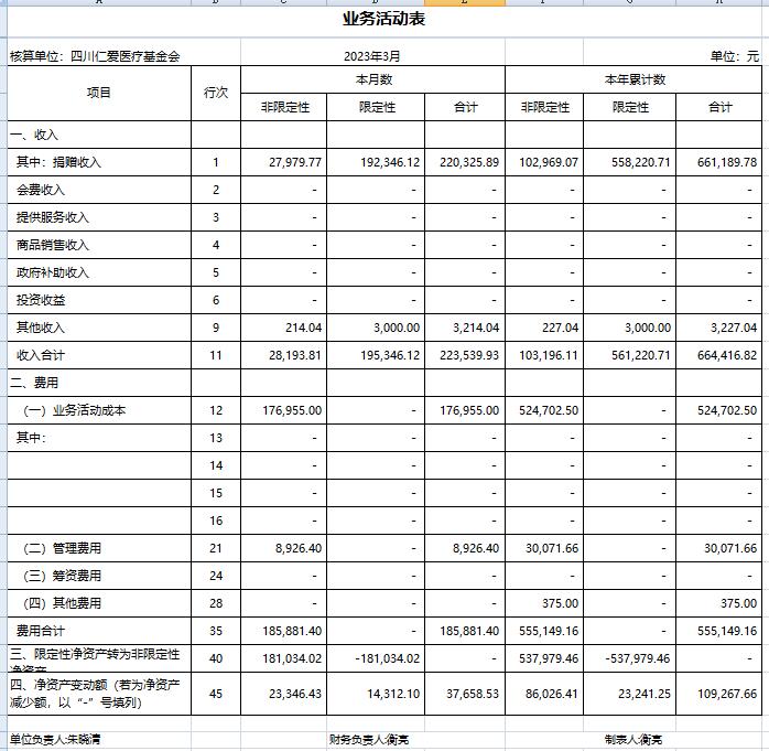2023年3月捐赠收入及财务报表
