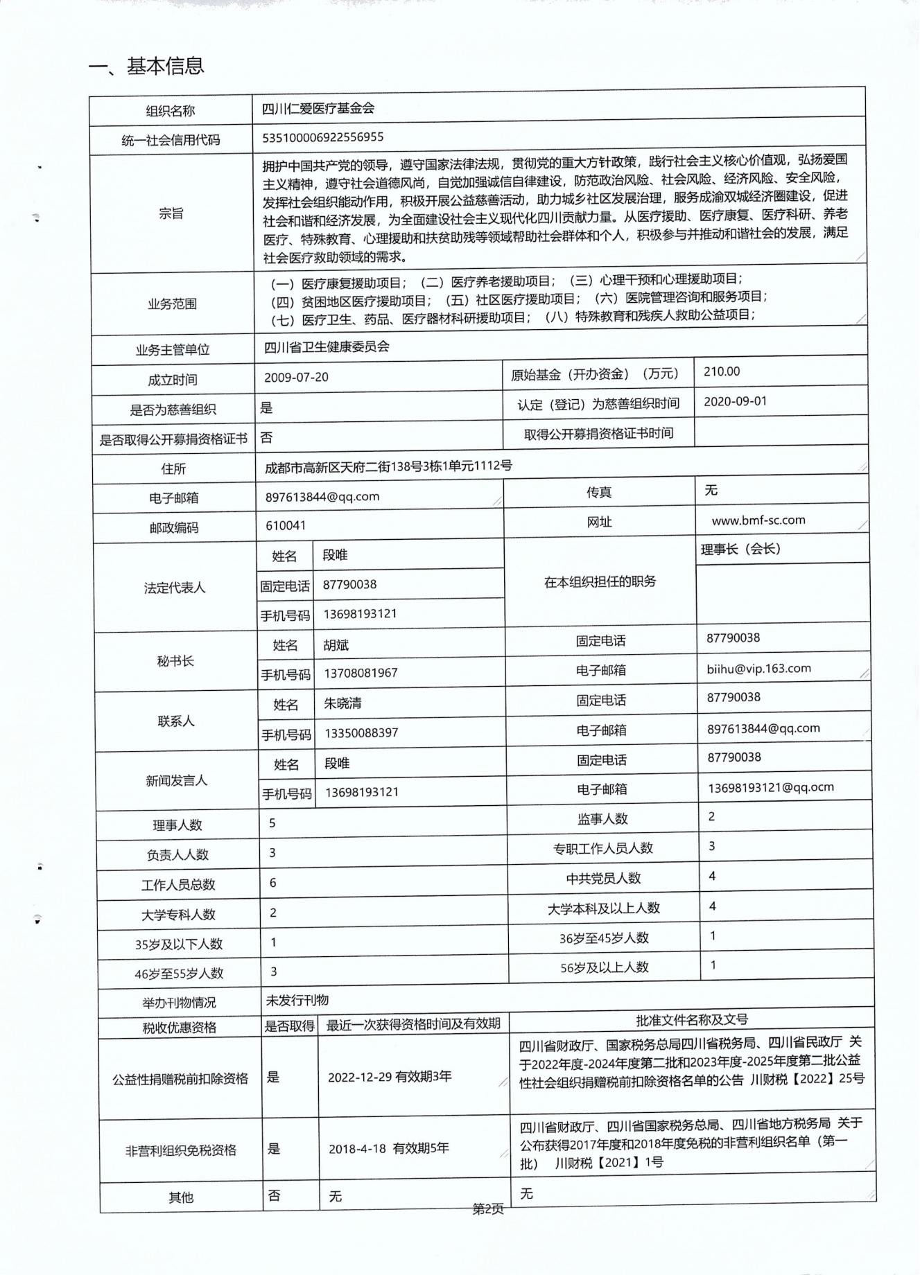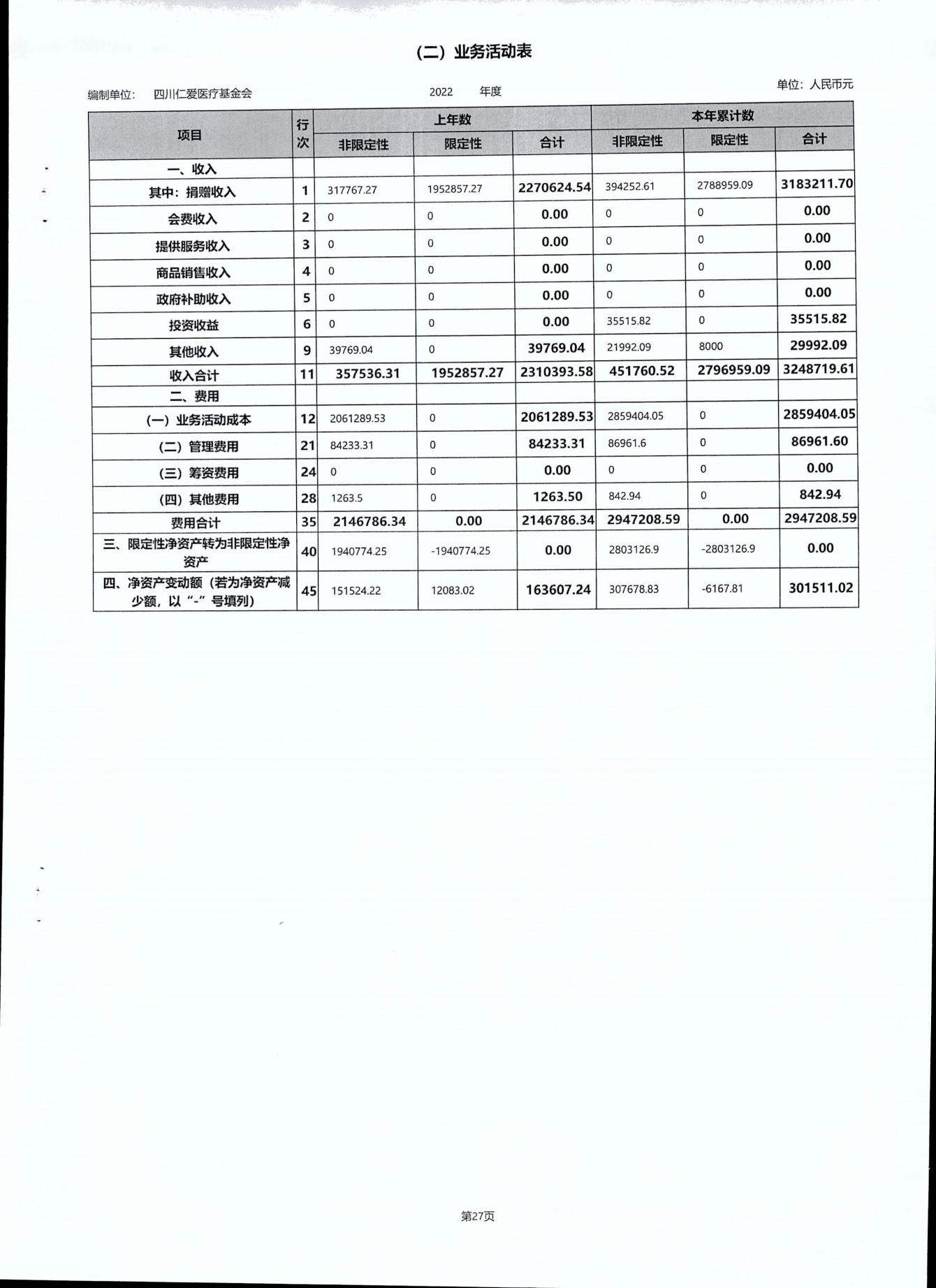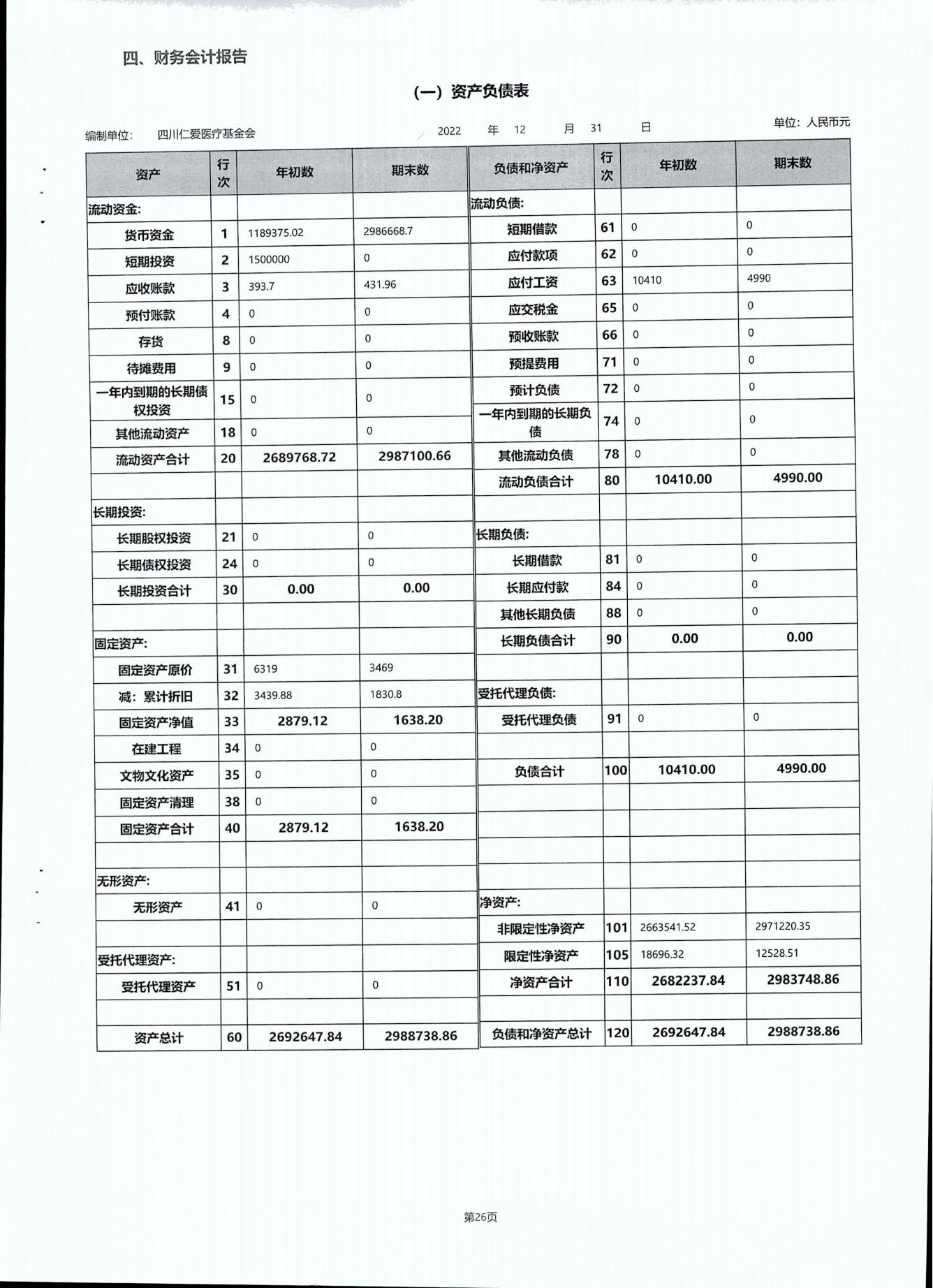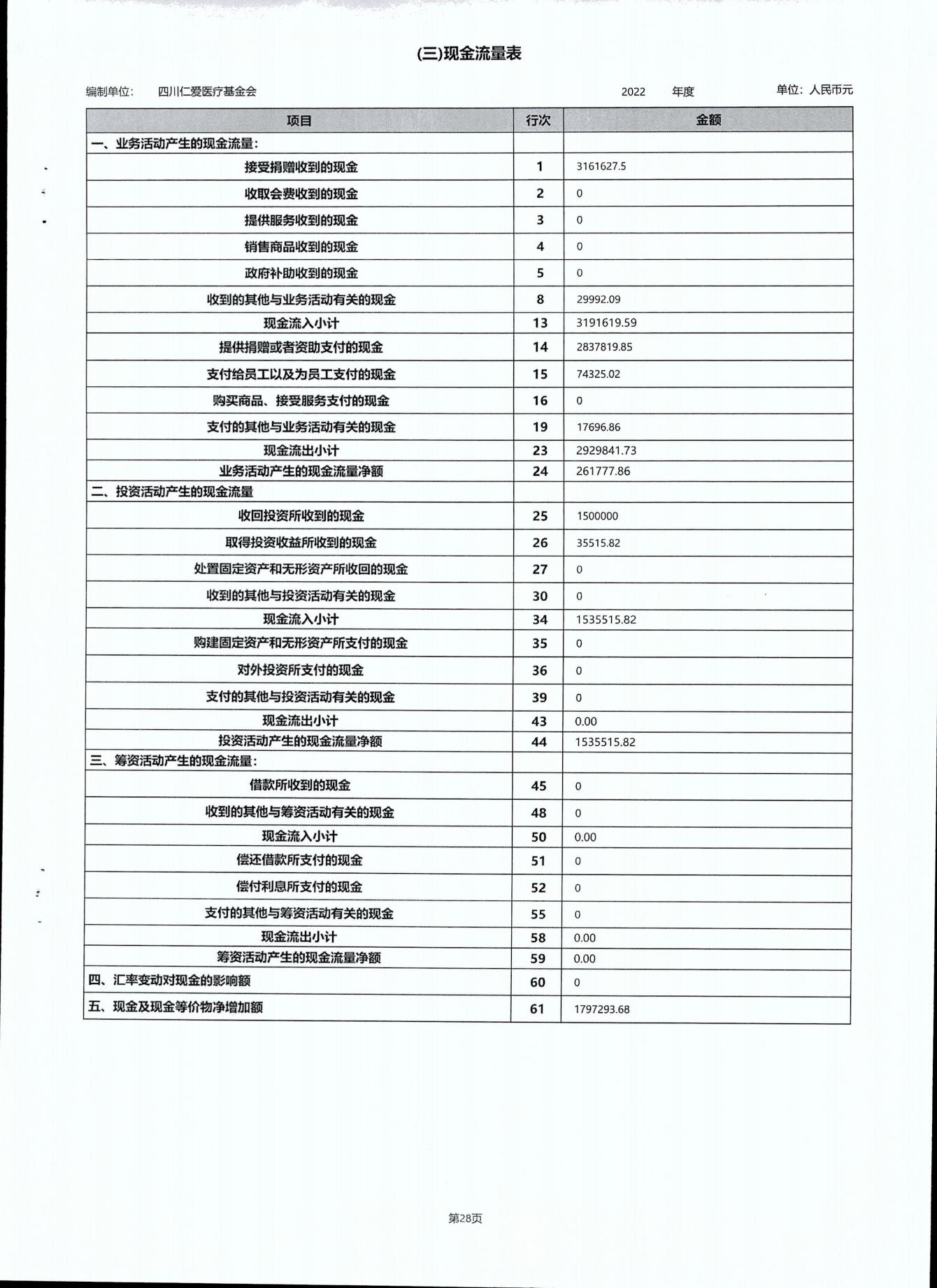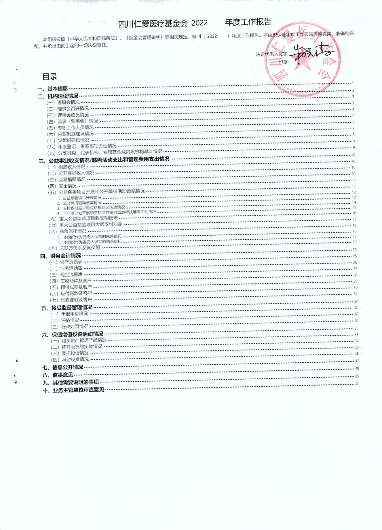 四川仁爱医疗基金会2022年年度工作报告(全文)