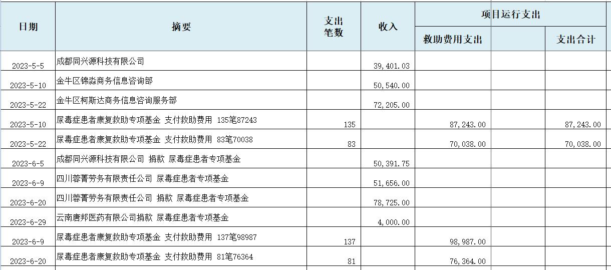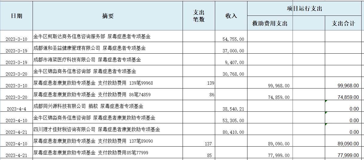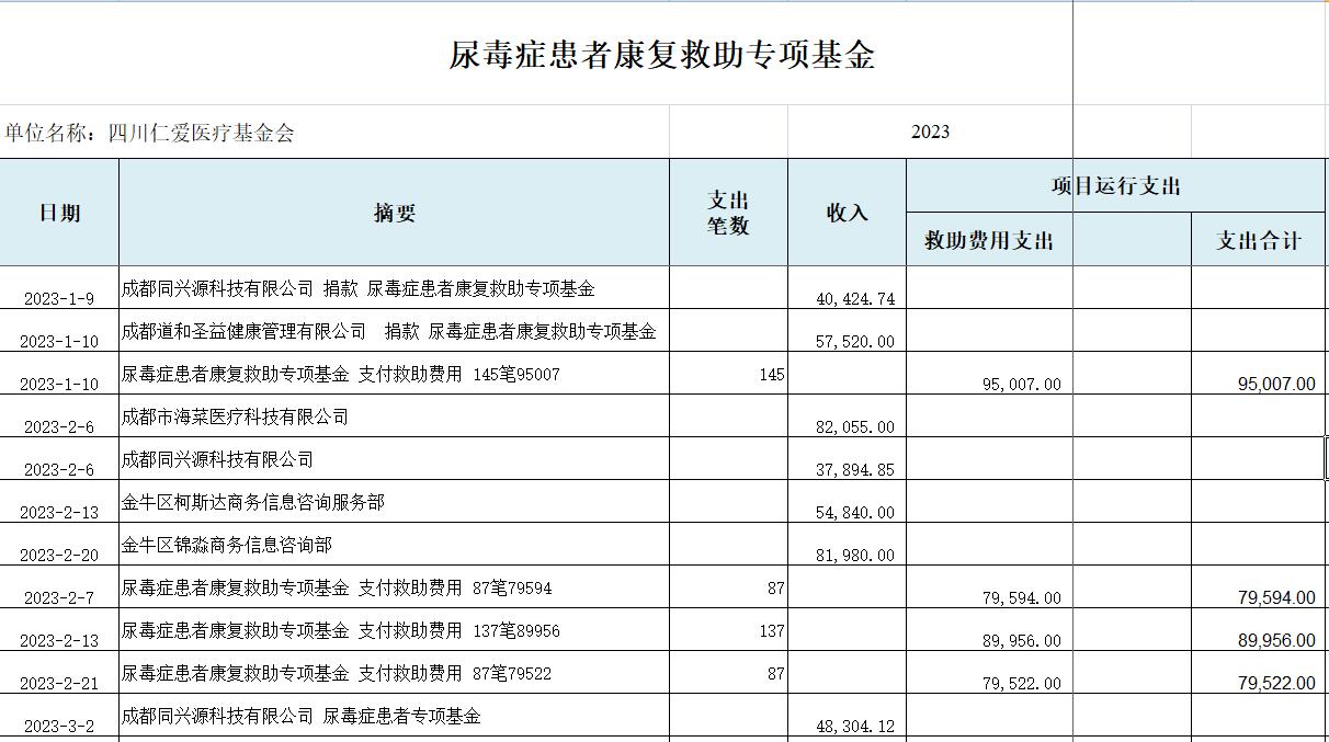 2023年上半年“尿毒症患者救助专项基金”收支明细