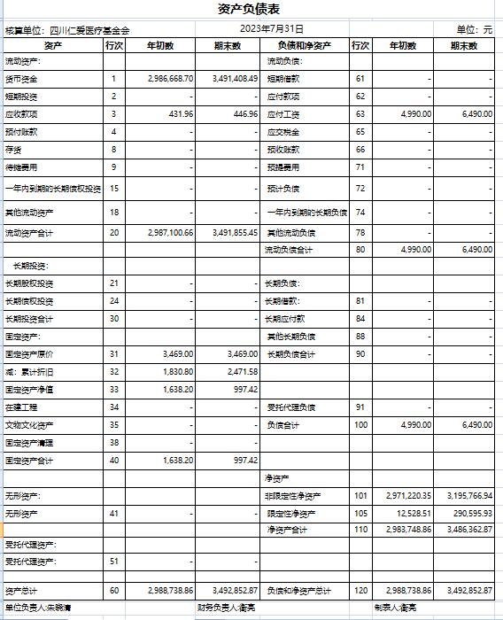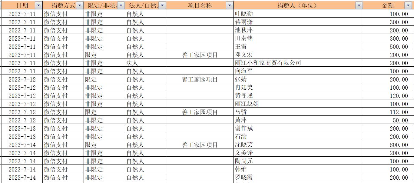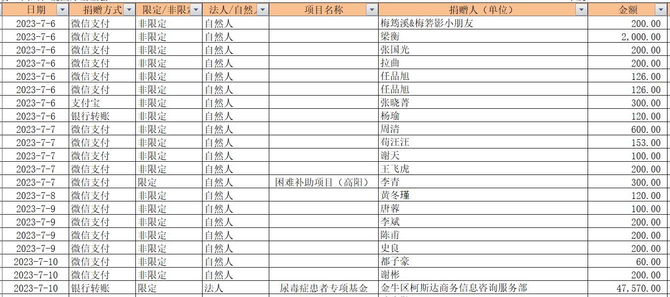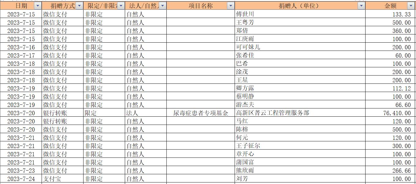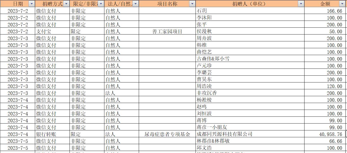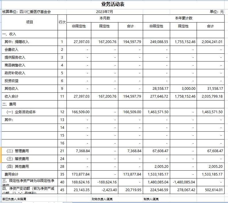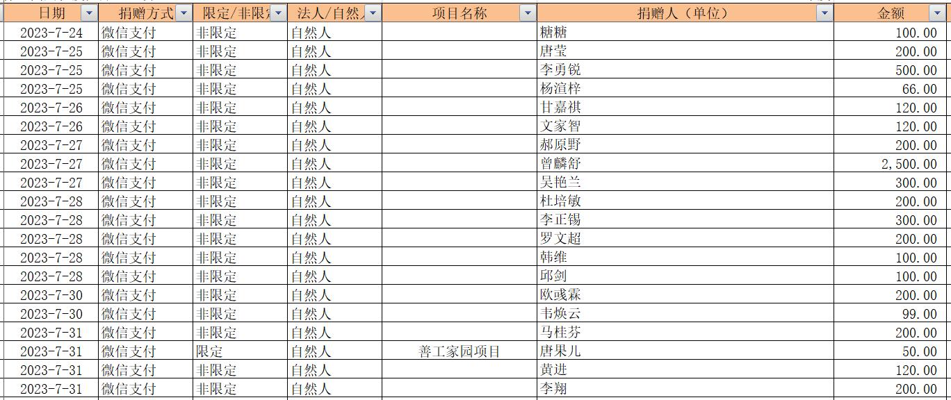 2023年7月捐赠收入及财务报表