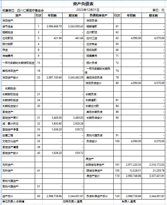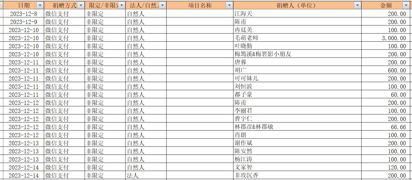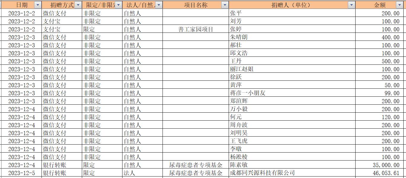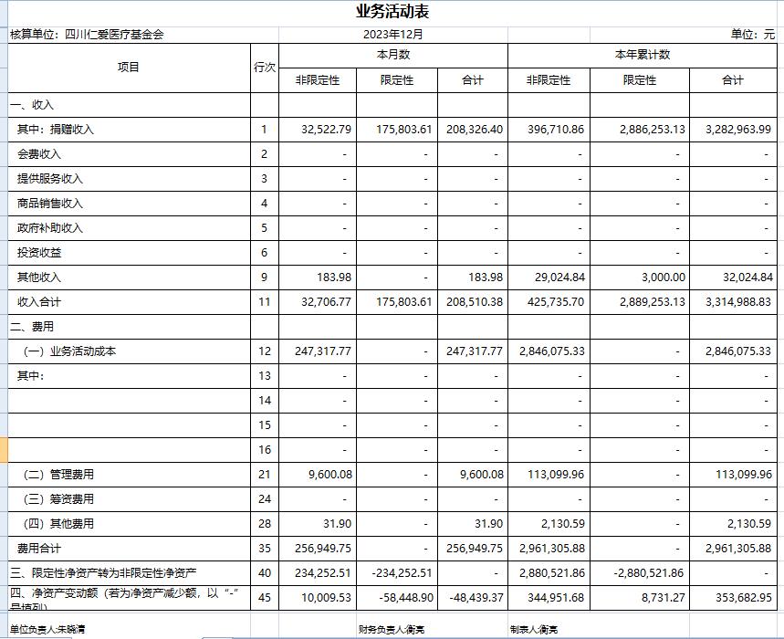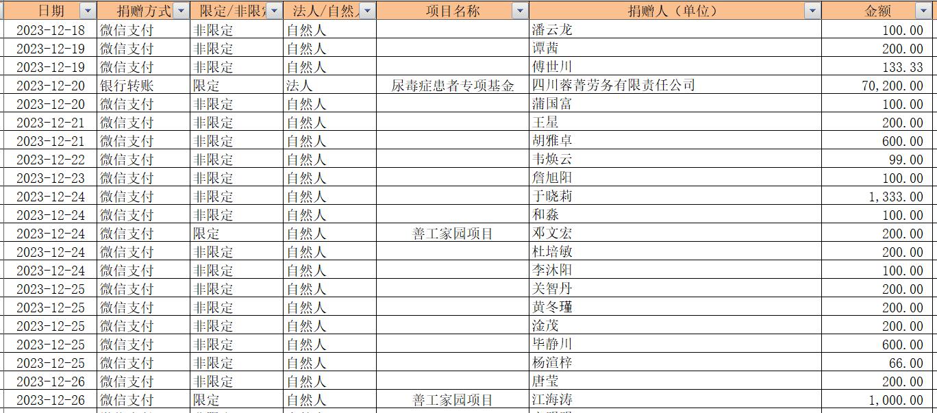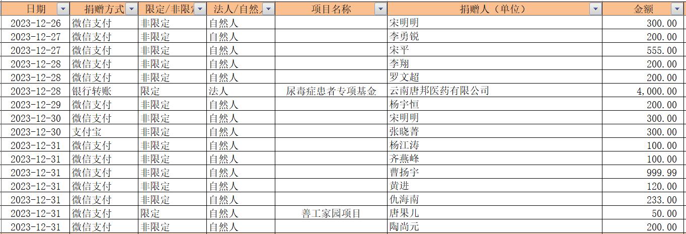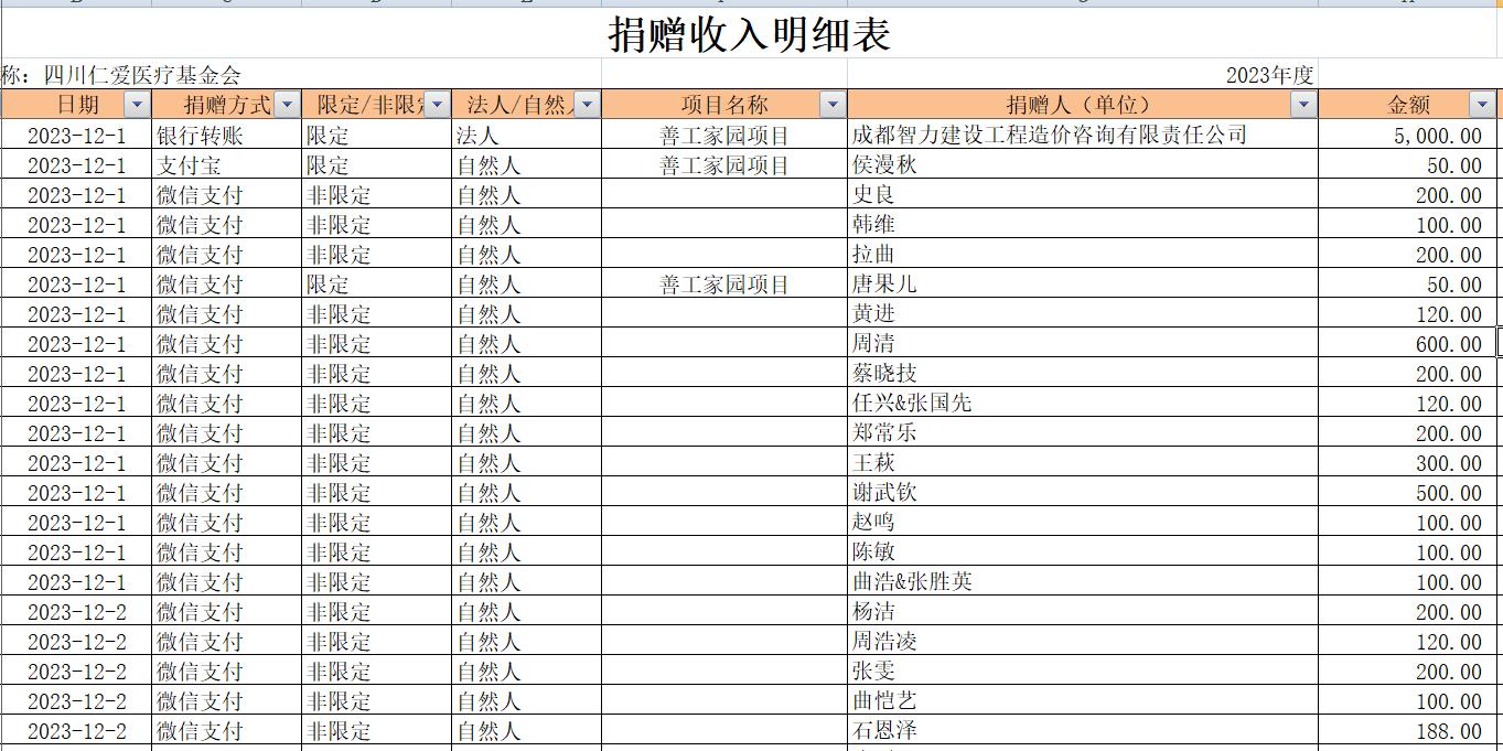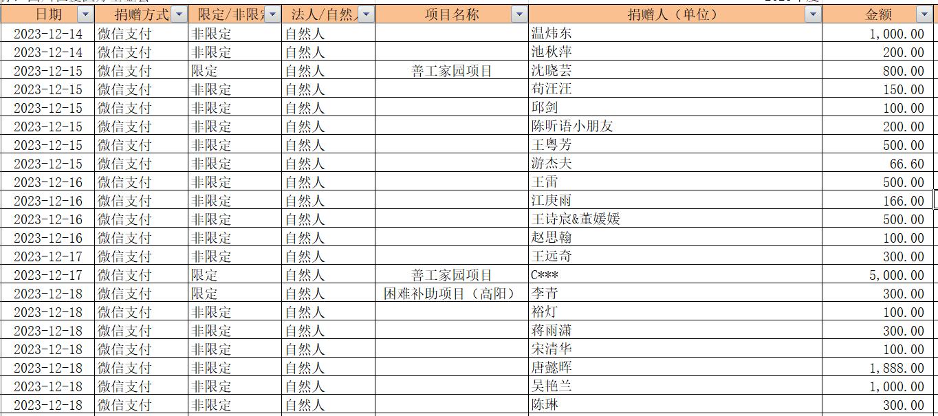 2023年12月捐赠收入及财务报表