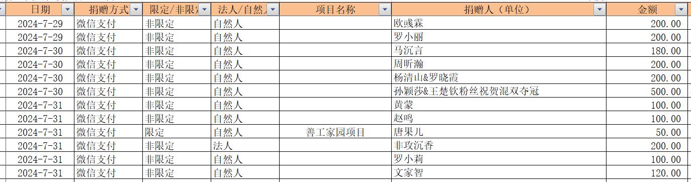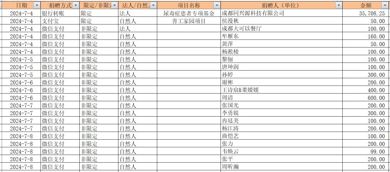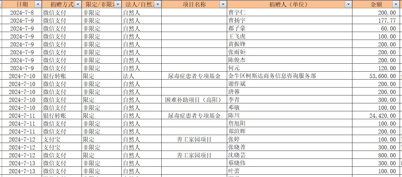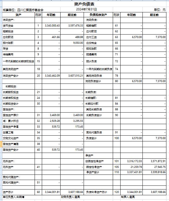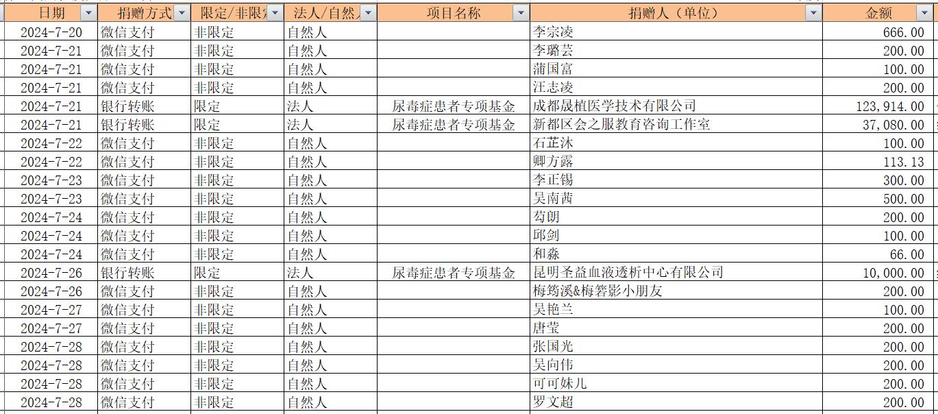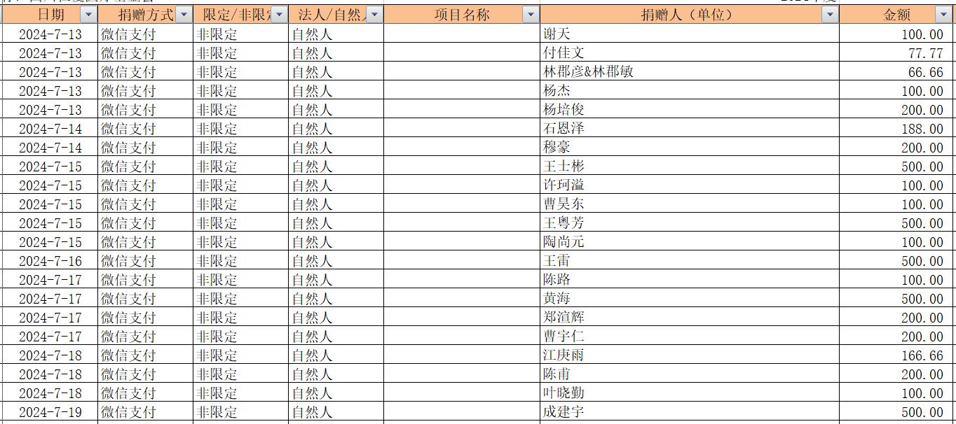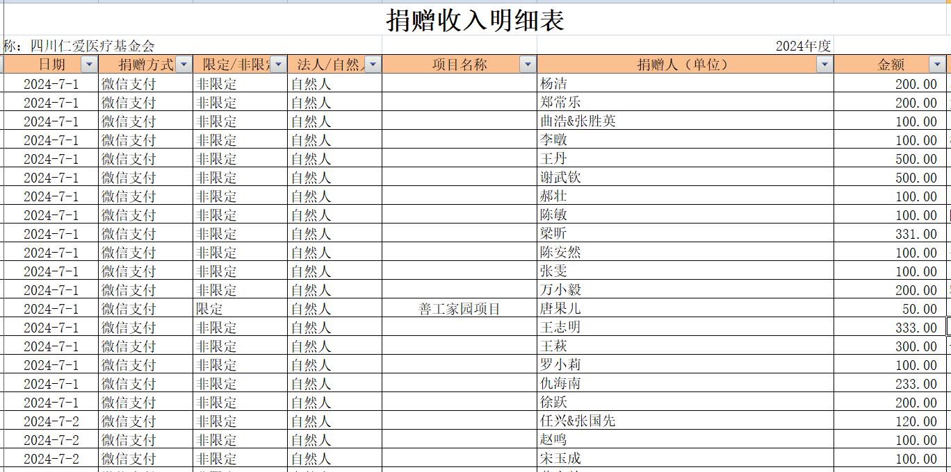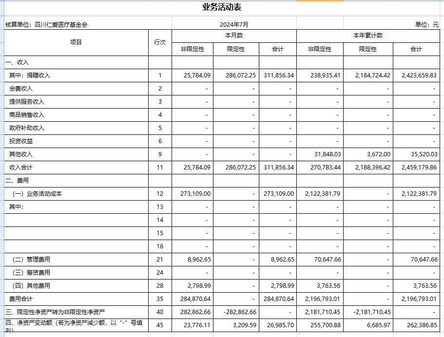 2024年7月捐赠收入及财务报表
