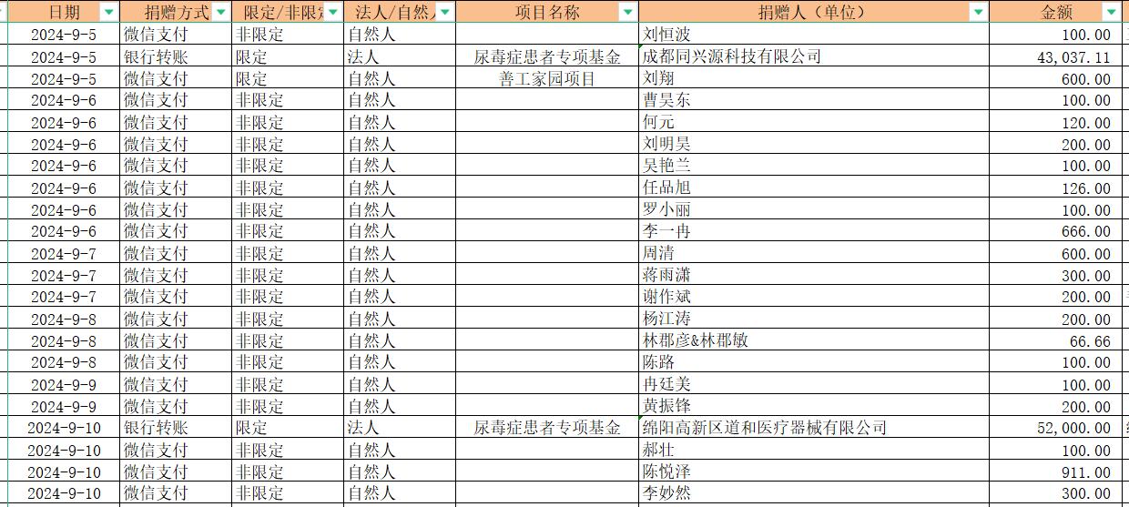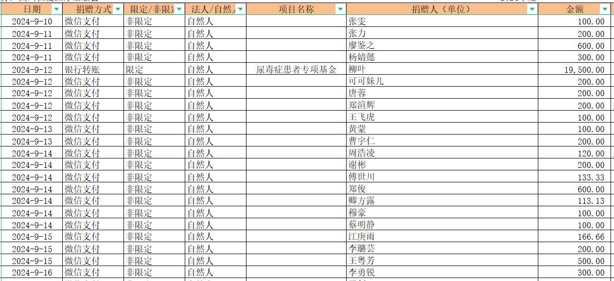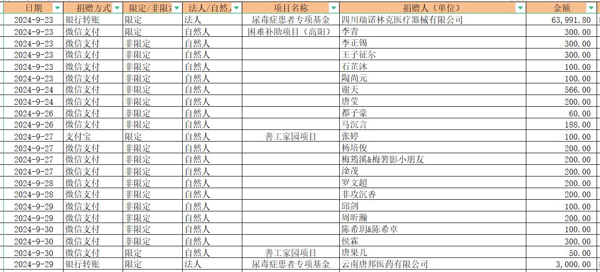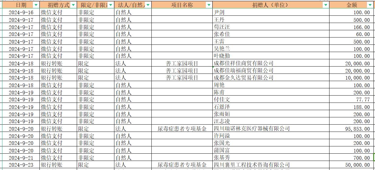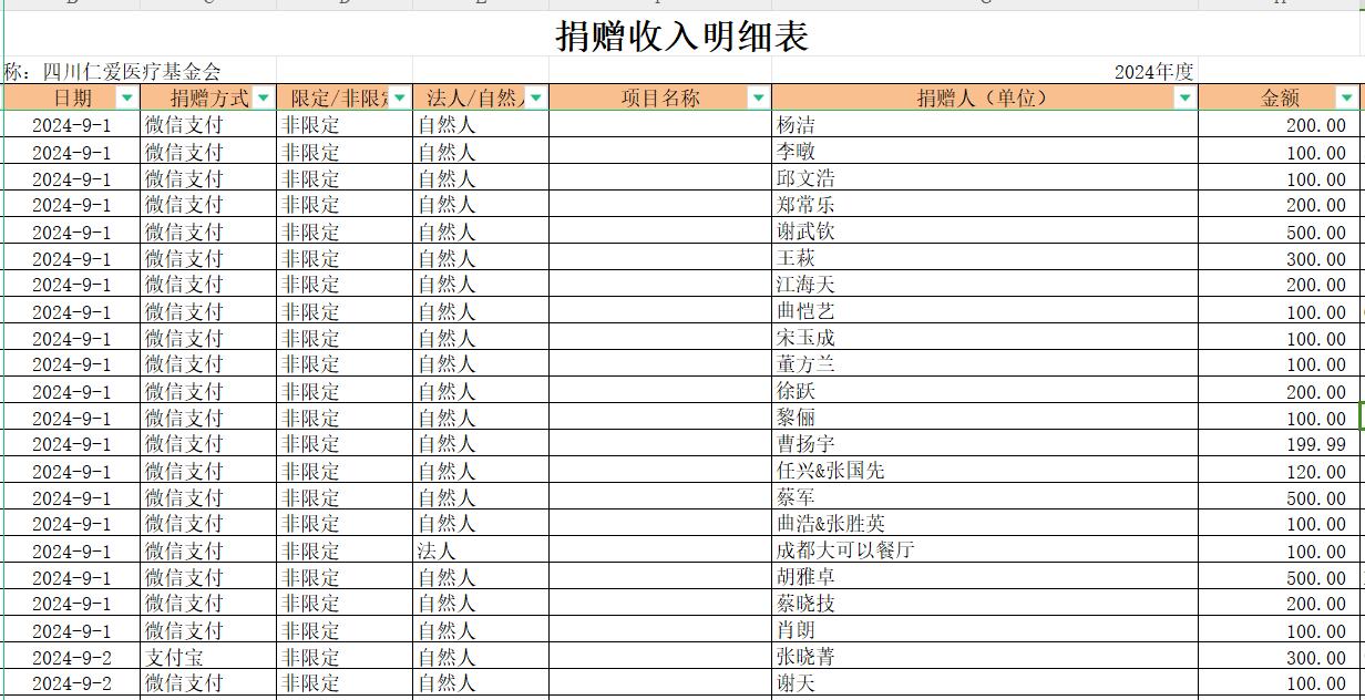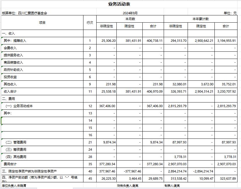 2024年9月捐赠收入及财务报表