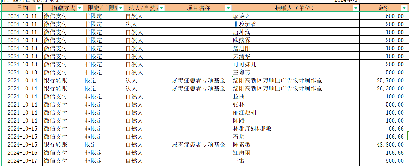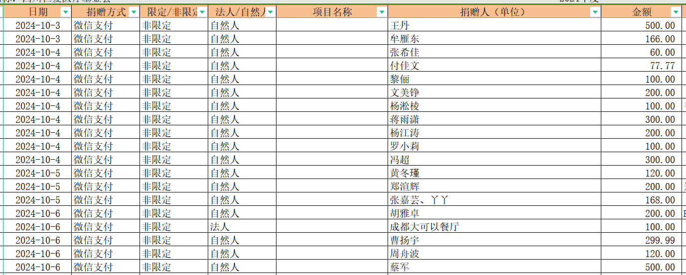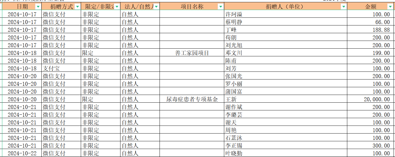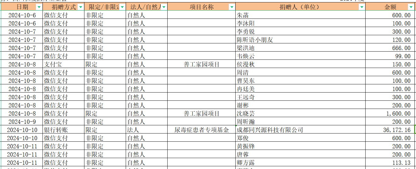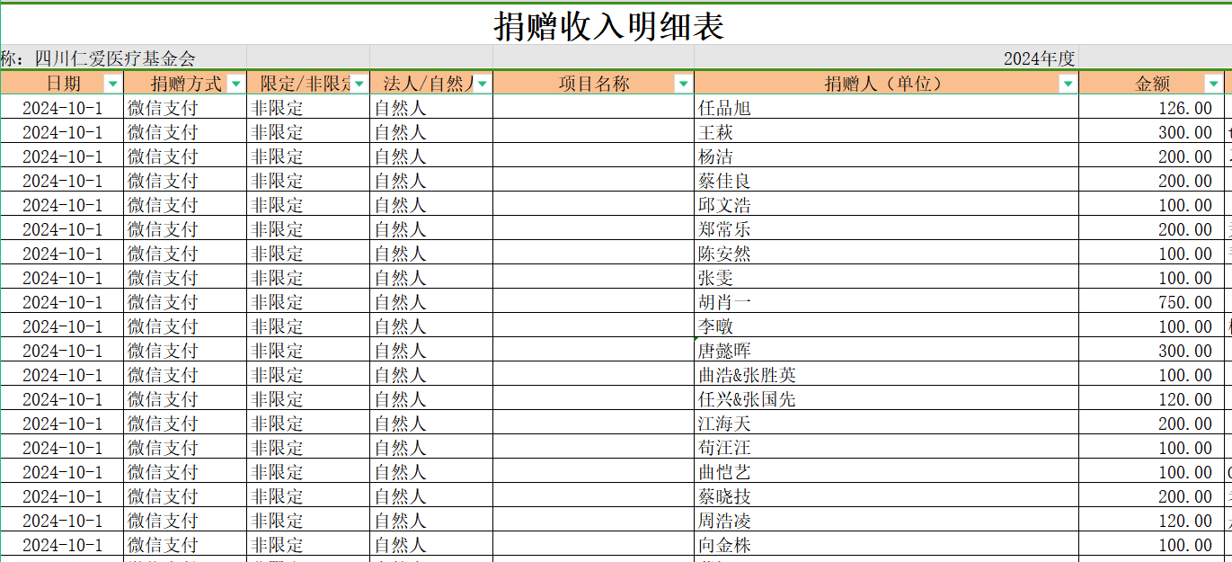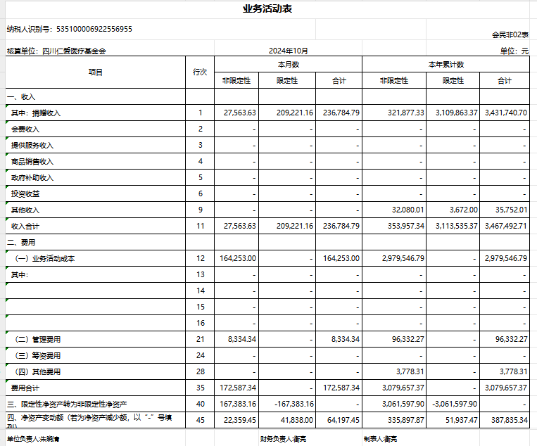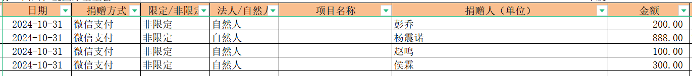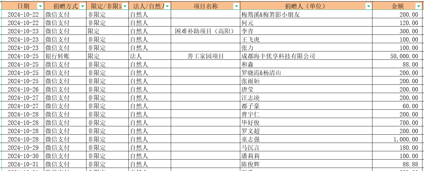 2024年10月捐赠收入及财务报表