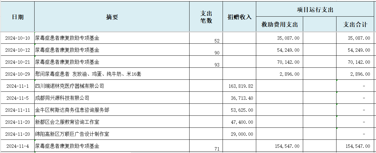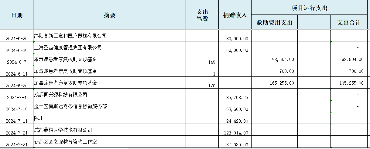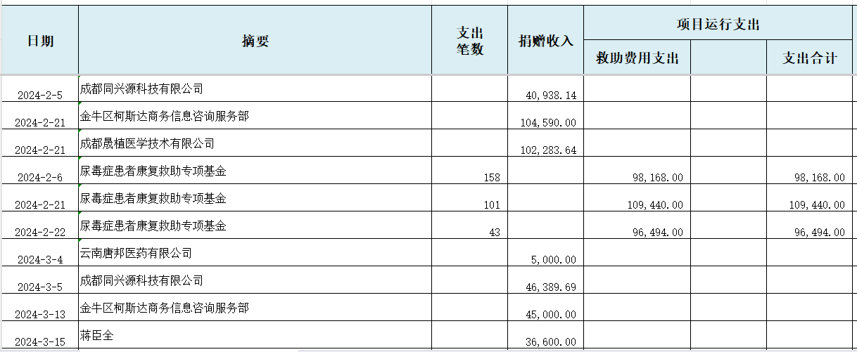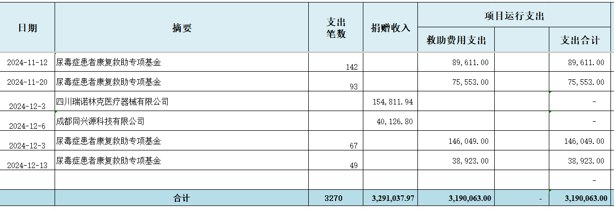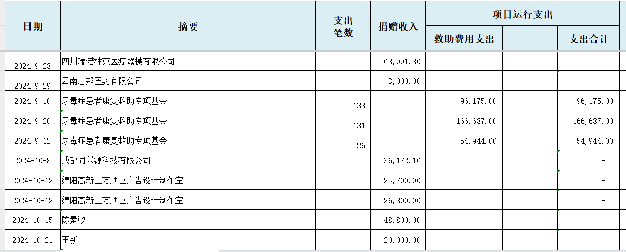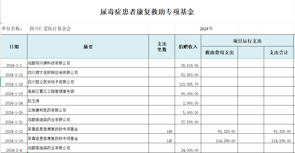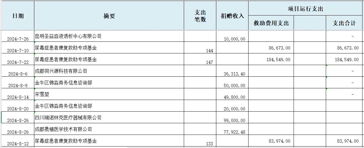 2024年“尿毒症患者救助专项基金”收支明细