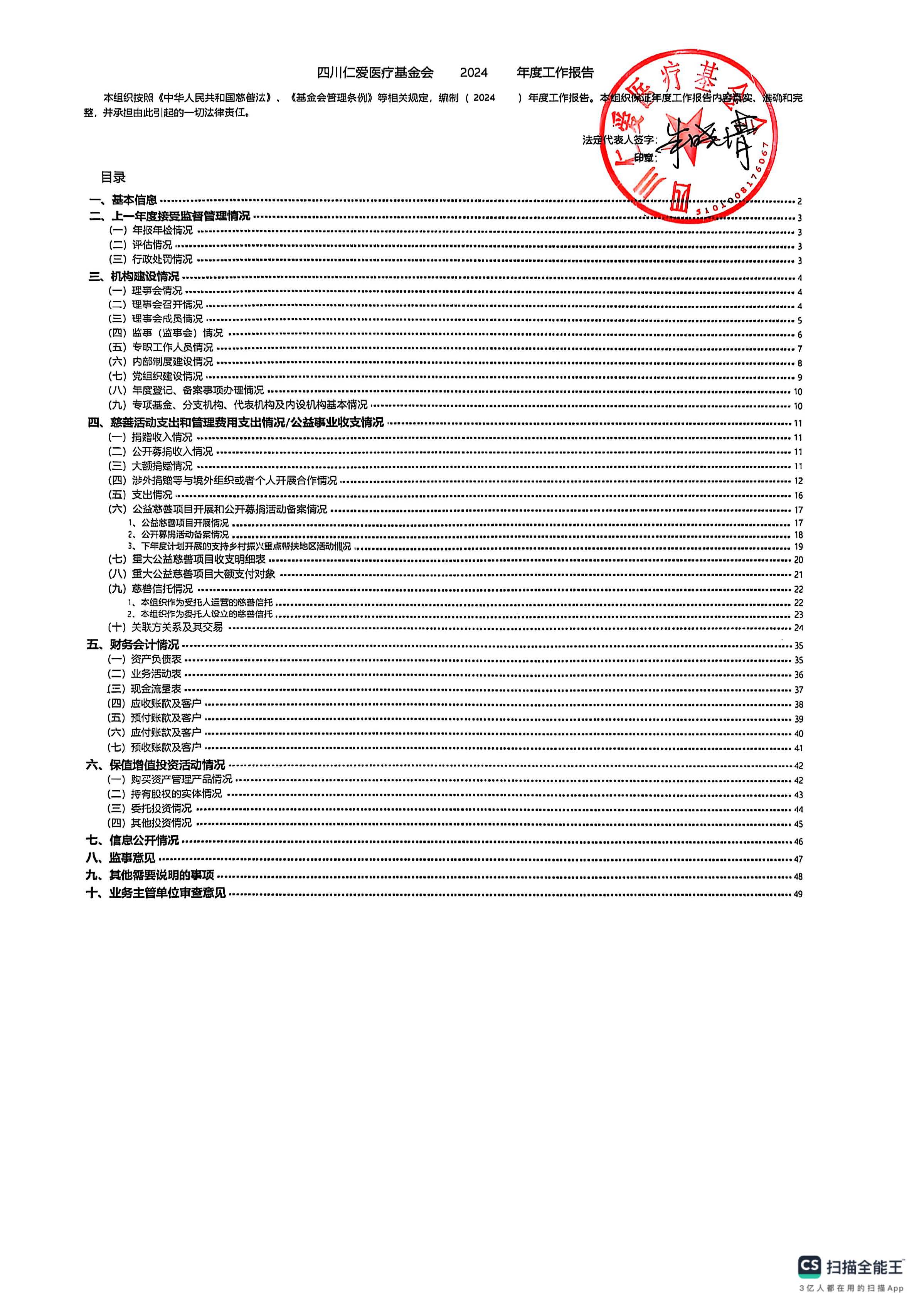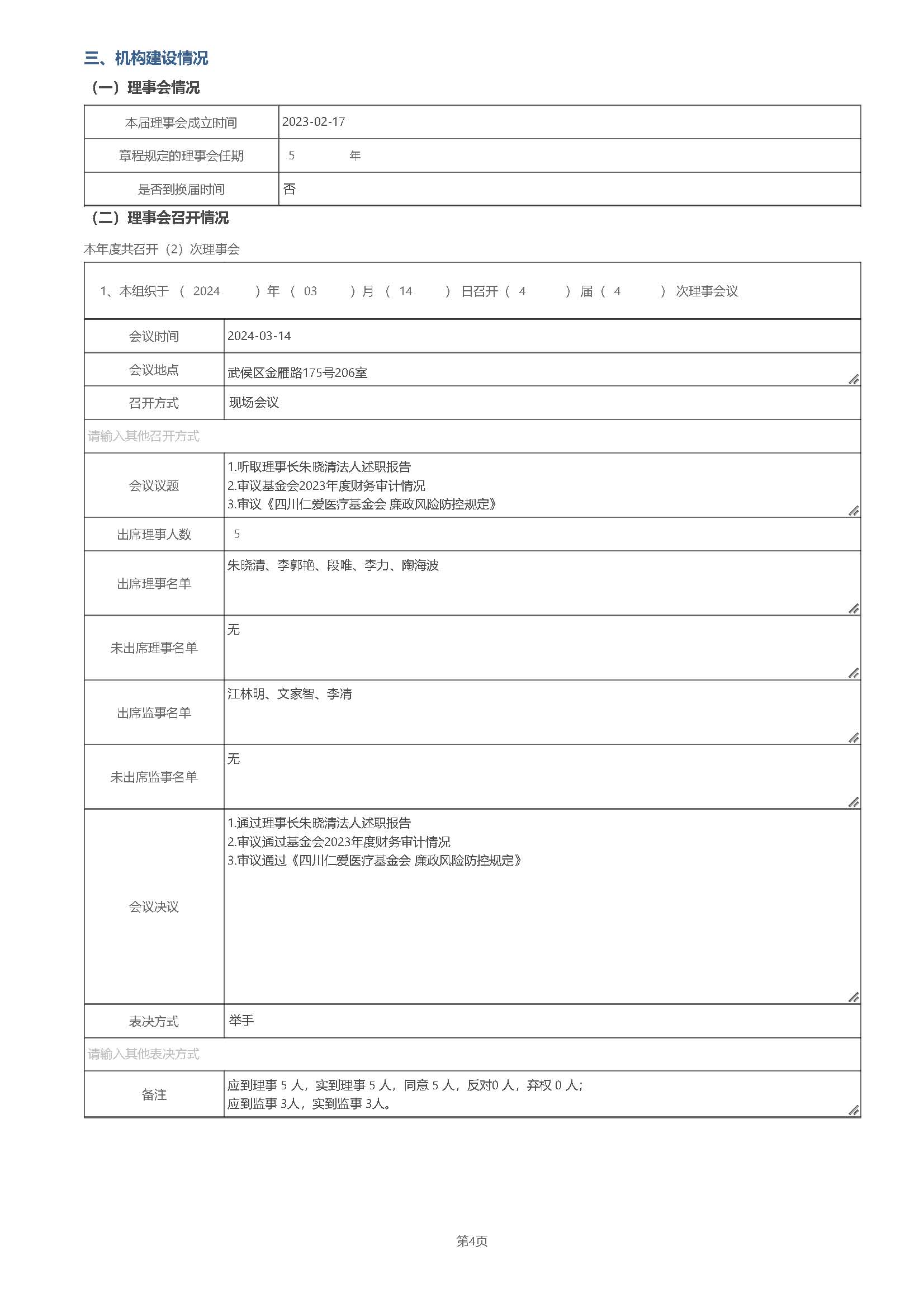 四川仁爱医疗基金会2024年年度工作报告(全文)