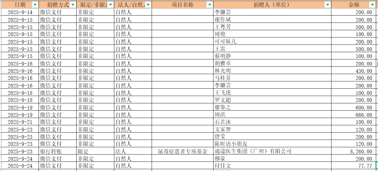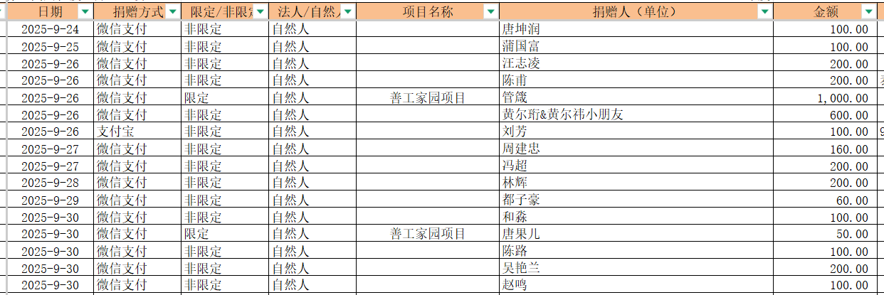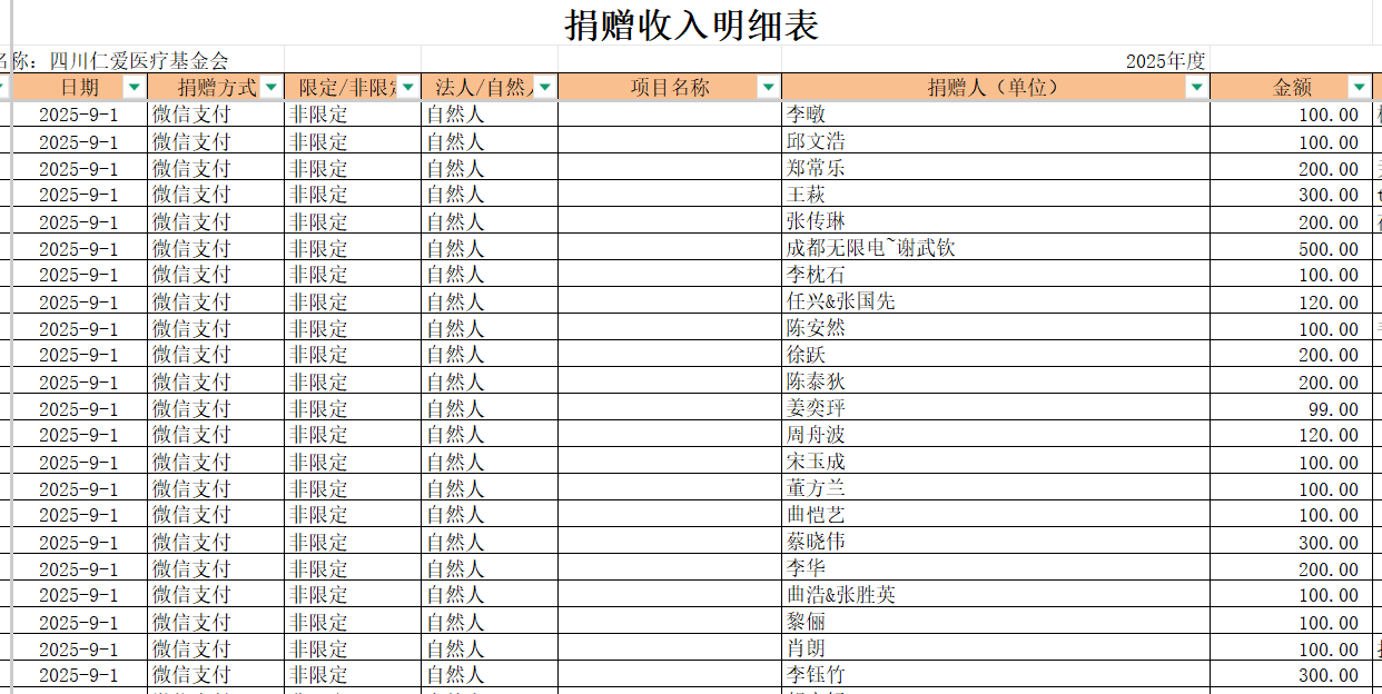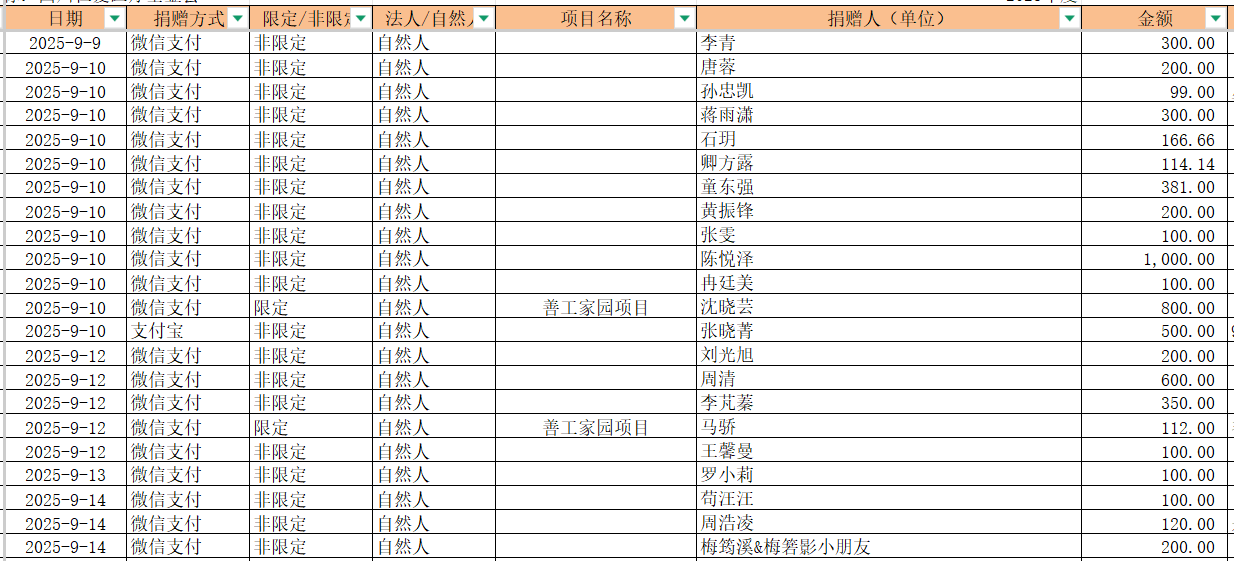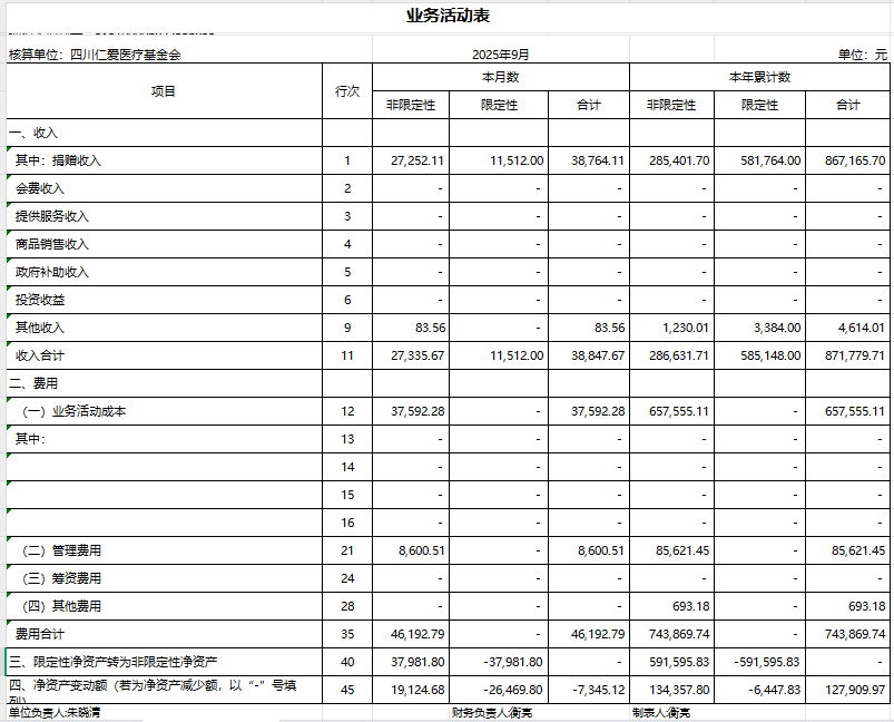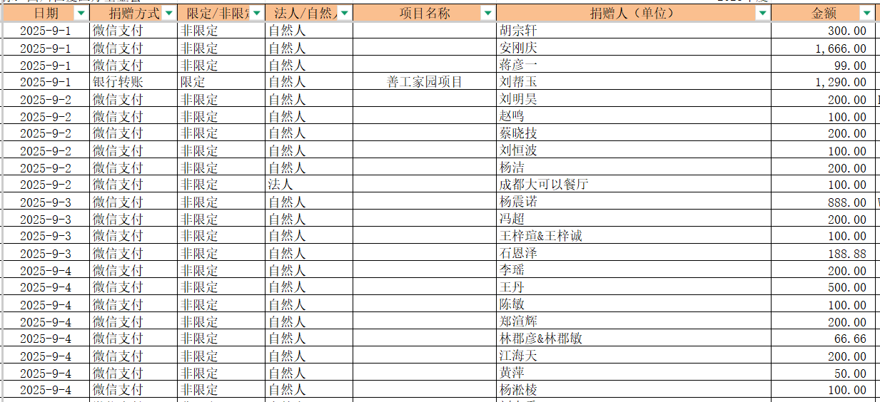 2025年9月捐赠收入及财务报表