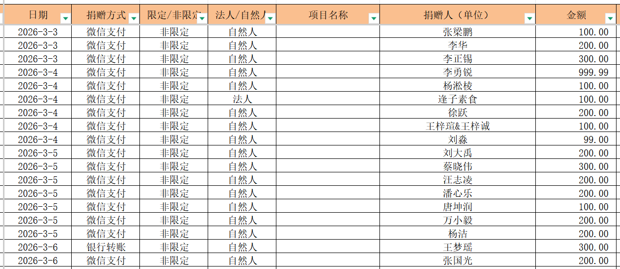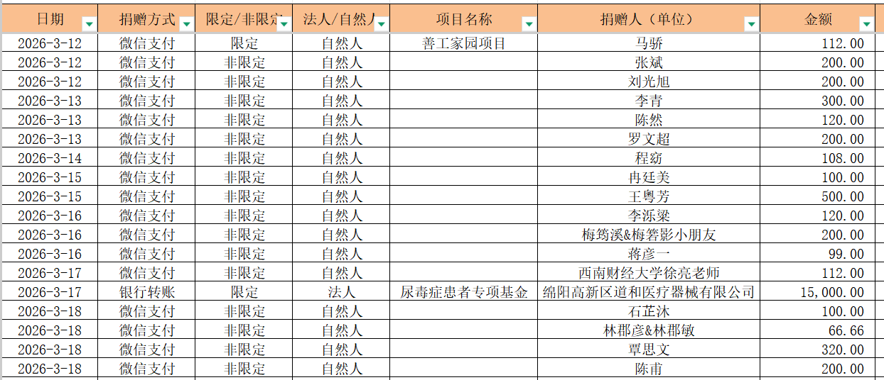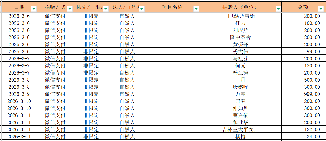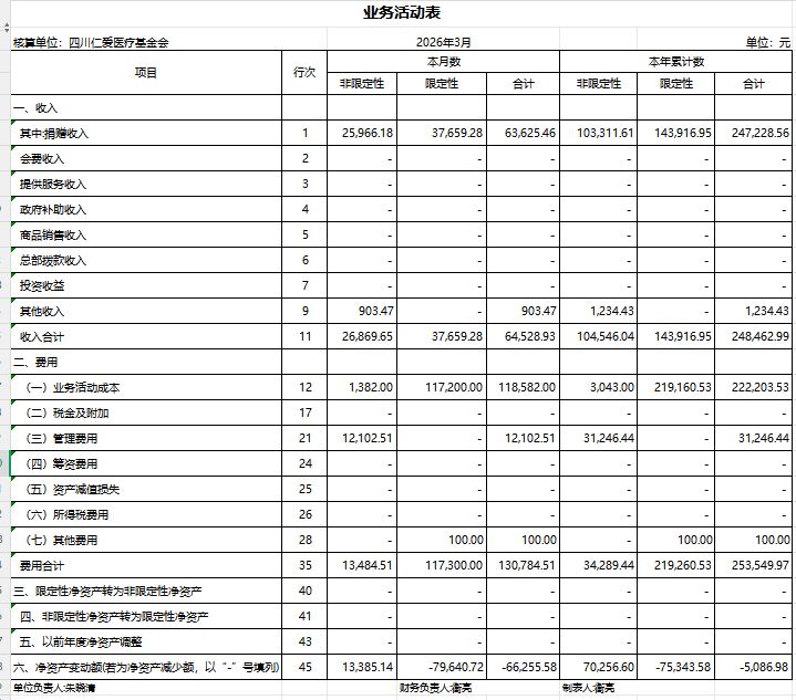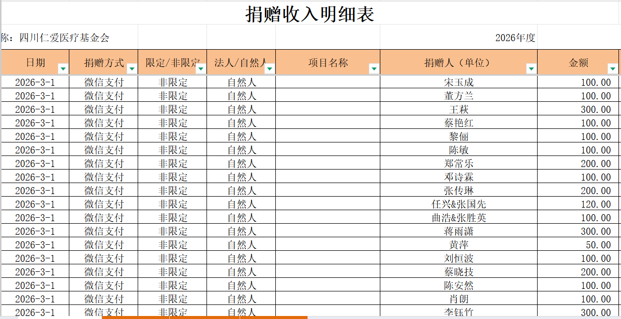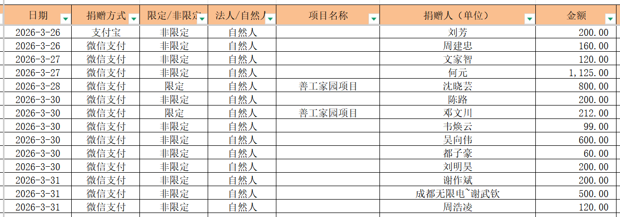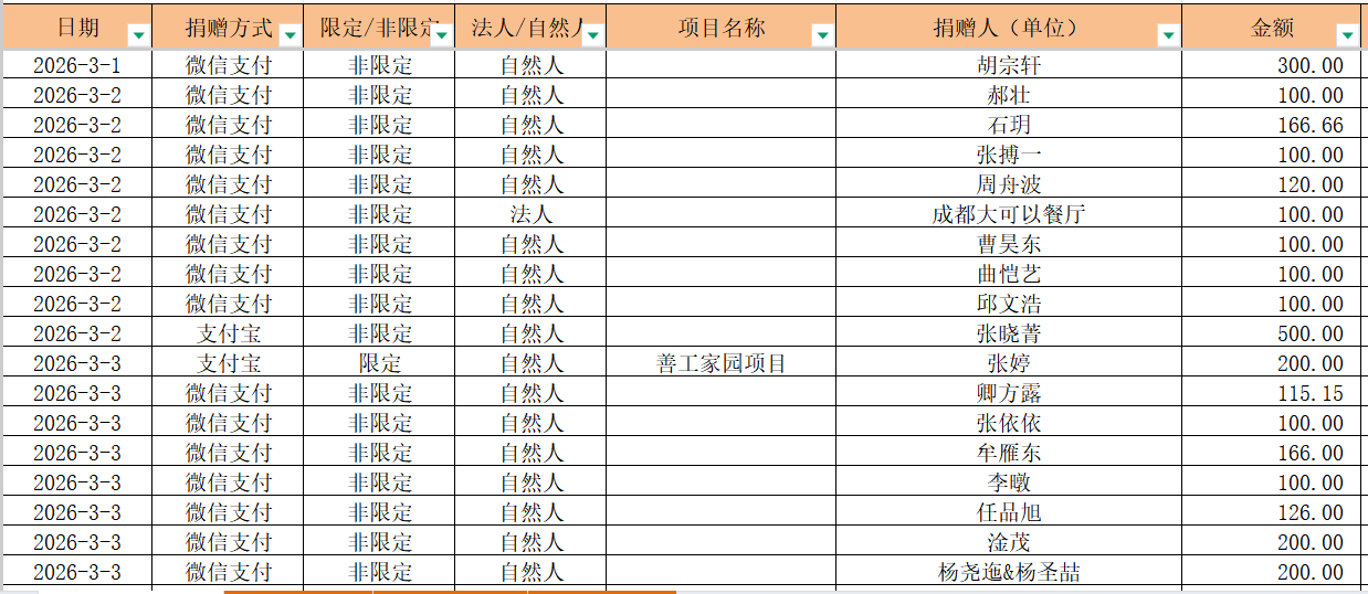 2026年3月捐赠收入及财务报表