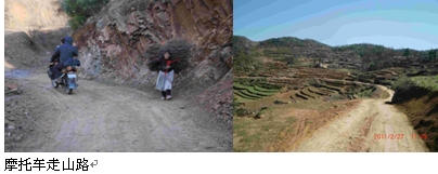他们用摩托车载我们,摩托车的确是山路最佳的交通工具,在途中尚看诊一位70岁老伯, 双眼均盲(右眼角膜坏死,左眼白内障),因对光皆有反应, 故建议手术治疗。
