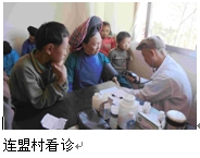 2011年2月26日清晨5:00抵达贵州草海(威宁),星月当空,穹苍大地尚在沉睡中,我们出了火车站,苗人王先生及张先生开车来接,途中爆胎,自行换补备胎,在弯延崎岖的山路爬行,7点到达赫章县铁匠苗族自治乡,再走十多分钟山路进到连盟村,吃了早饭,约十点开始义诊。