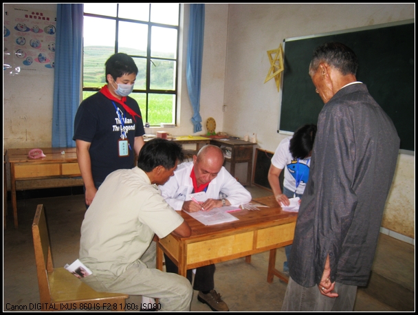 义诊成员:参加人员共34人,包括医师7人(台湾医生2人及大陆医生5人)、辅导老师5人(台湾4人及大陆1人)、护士1人、学生21人(北医大11人、北航大1人、内蒙大1人、延安医大1人、天津中医大1人、南京中医大1人、华西医大1人、川北医大护1人、北京联大1人、凉山卫校1人及云大1人)。
