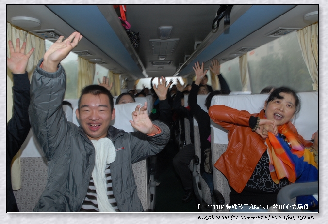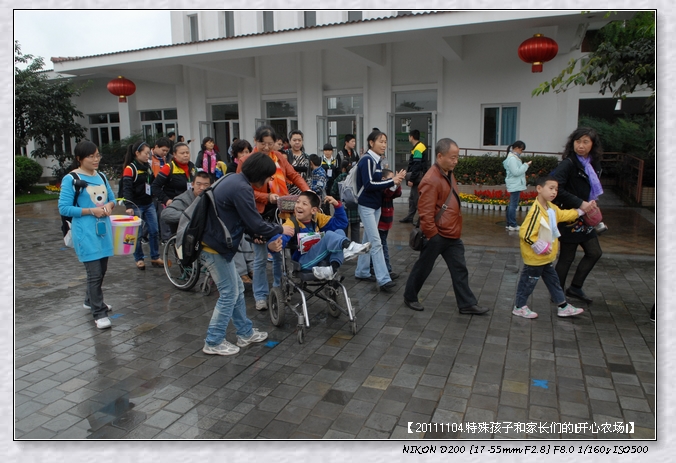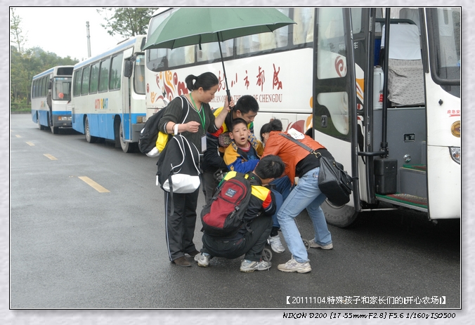 4台大巴车,满载浩浩荡荡170多人的队伍,有武侯特校和善工家园的脑瘫宝宝、智宝宝、星宝宝、唐宝宝等,还有他们的爸爸妈妈、老师、志愿者,在成都这个小雨的早上,悄然离开这个喧哗的都市,开往都江堰。。。。